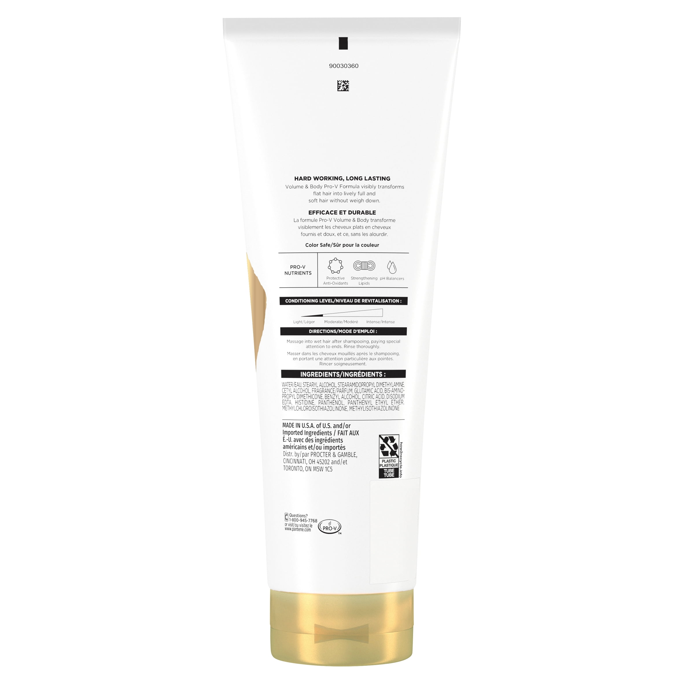 Your haircare should work as hard as you do. Pantene PRO-V Volume & Body Conditioner visibly transforms flat hair into lively full and soft hair without weigh down. This volumizing conditioner contains 2x more nutrients, so you get fullness with every wash that lasts 72+ hours. This formula is safe for colored hair and crafted with protective anti-oxidants and pH balancers to leave you with volume and healthy strands. With Pantene Pro-V Volume & Body, say goodbye to flat strands and unleash soft, fuller hair that looks and feels beautiful for longer.