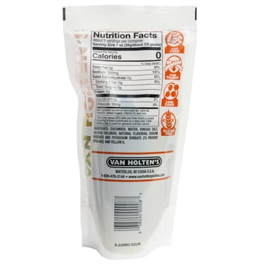 Cucumber, Water, Salt, Vinegar, Natural Flavoring, Sodium Benzoate And Potassium Sorbate (To Prevent Spoilage), Calcium Chloride, Alum, And Yellow #5