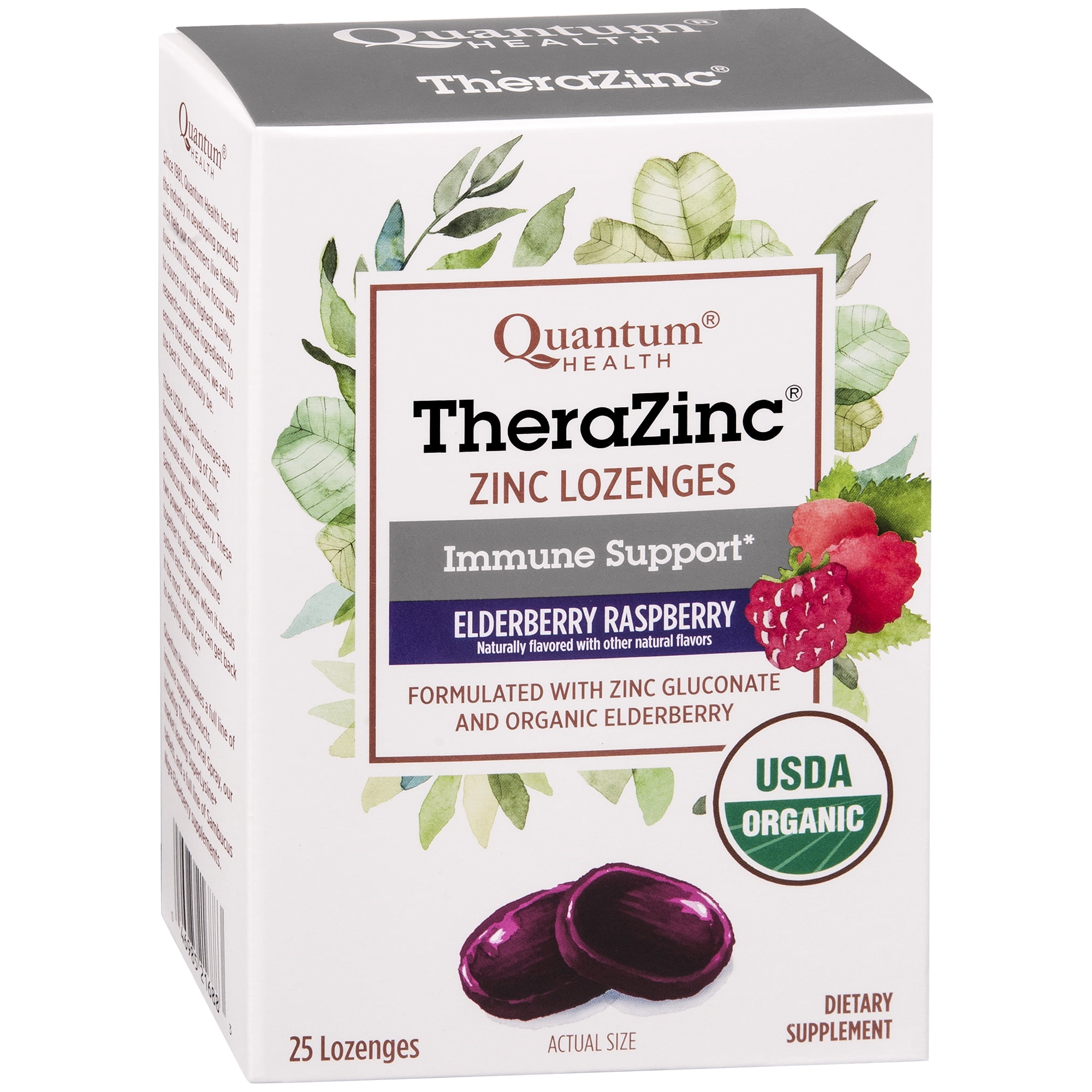 Quantum Health Organic TheraZinc Elderberry Raspberry Immune Support Zinc Supplement Lozenges, 25 Ct