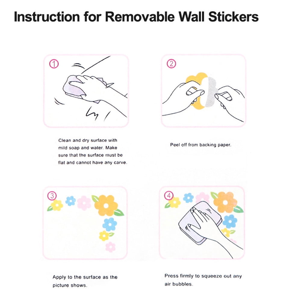 You need to make sure the surface is clean and dry before you stick it. Any greasy dirt or water will influence the perfection of the sticker. Sometimes there might be some bubbles appear in big stickers, if this happens please remove the bubble or just pin it. When the wall is wet due to some unexpected reasons, it might have bad influences on the sticker, when this happens please dry the wall and the sticker with an air blower or simply stick it again when the wall is dry.
