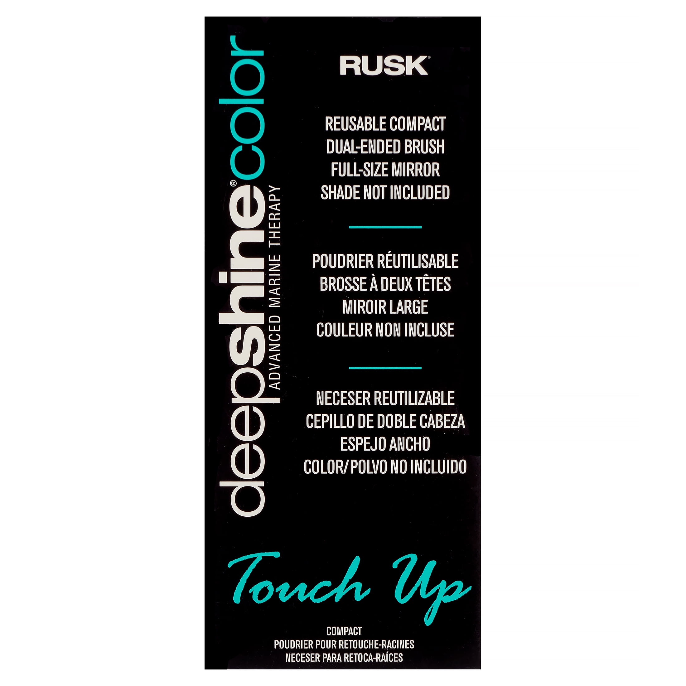 Rusk deep shine color touch up refillable compact holds your favorite touch up shade. This unique, reusable compact allows you to replace and refill your shade easily. Features a full-size mirror and dual-ended applicator brush for foolproof precision application.Rusk Deepshine Hair Color Touch Up Compact