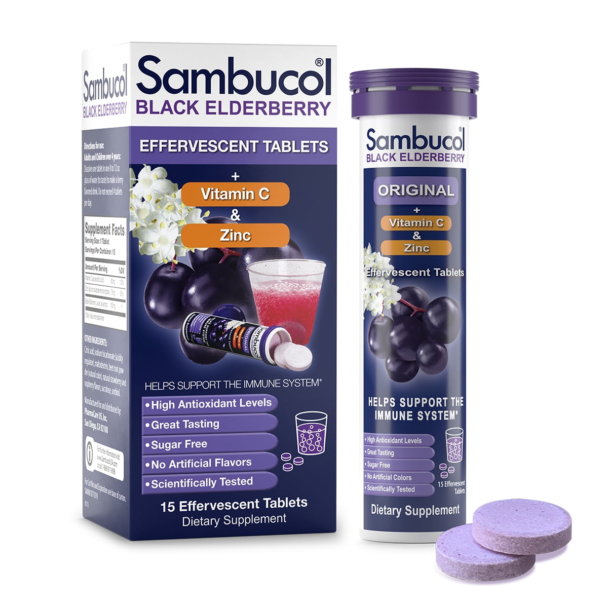 Sambucol Black Elderberry Effervescent Tablets, 15 Ct