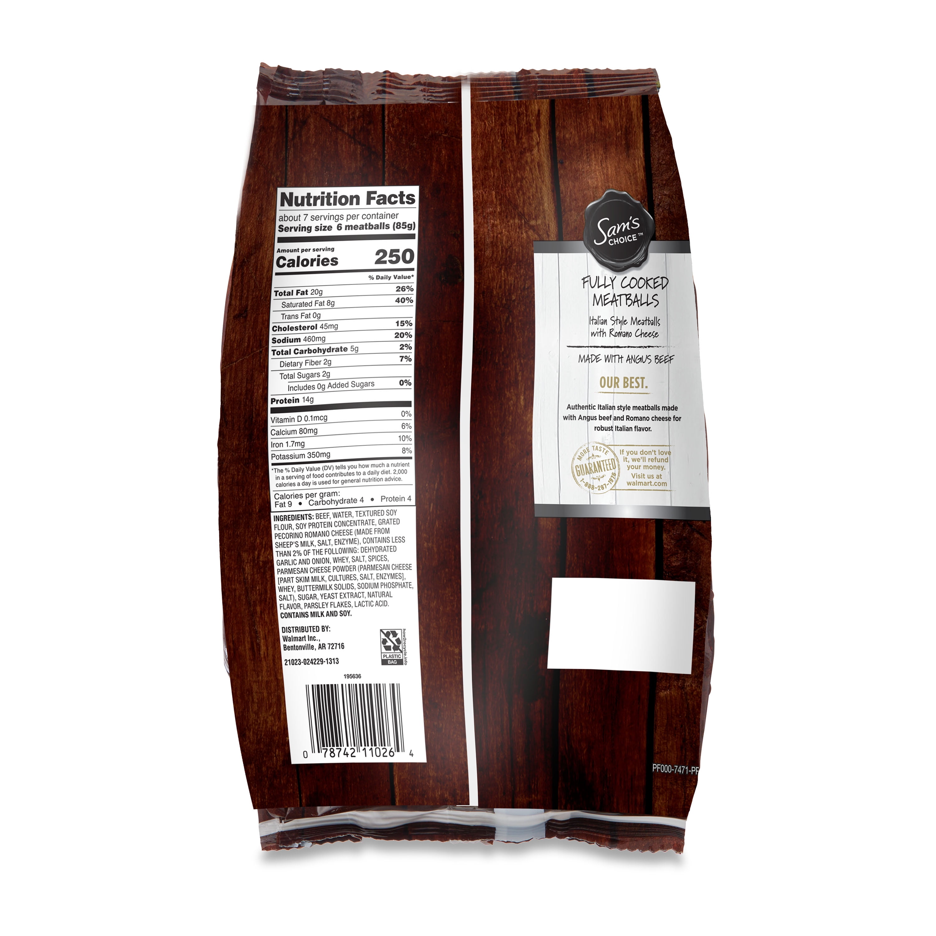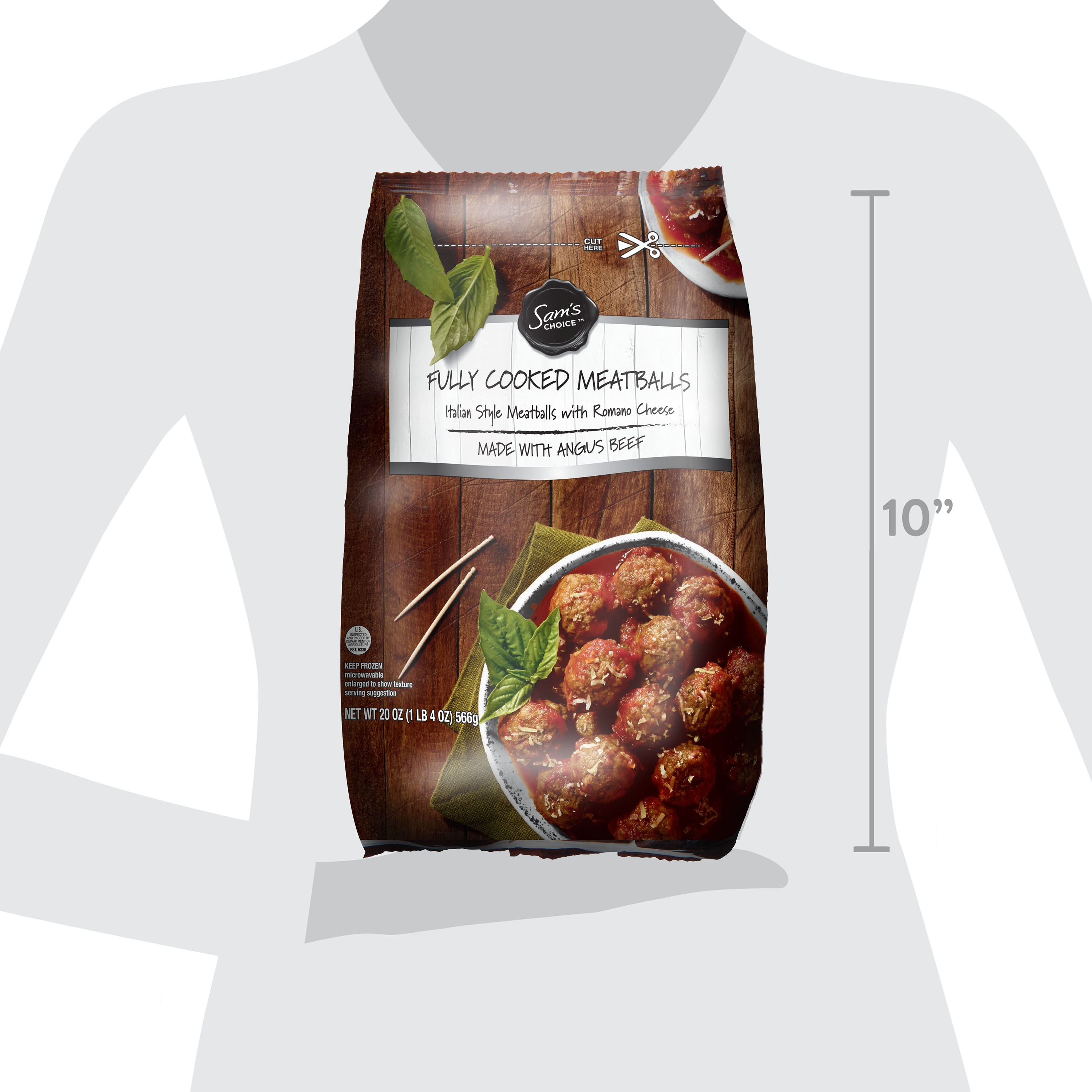 - Sam’s Choice Meatballs are made with premium cuts of Angus beef. This Italian inspired meatballs are perfect in pastas or enjoyed on their own as an appetizer. Combine prepared meatballs with spaghetti noodles, mushrooms, sautéed onions and marinara sauce to create an irresistibly delicious spaghetti and meatball dinner in no time. Serve meatballs as an appetizer with a side of tangy barbecue sauce for dipping. They offer nutritional benefits as they are a good source of protein, calcium and iron. They are USDA inspected so you are ensured with great quality meatballs. Dinner is made easy with Sam’s Choice Premium Angus Meatballs.