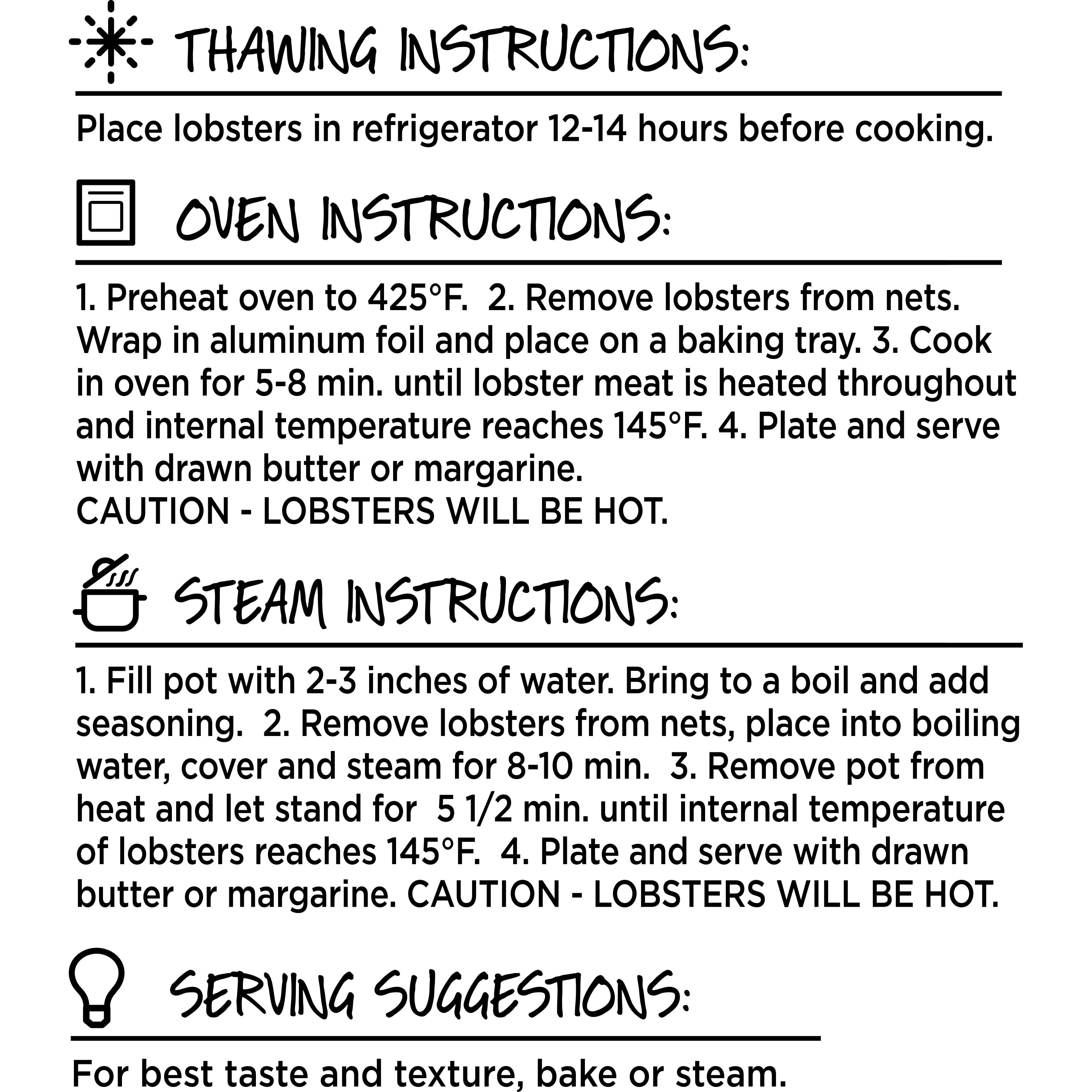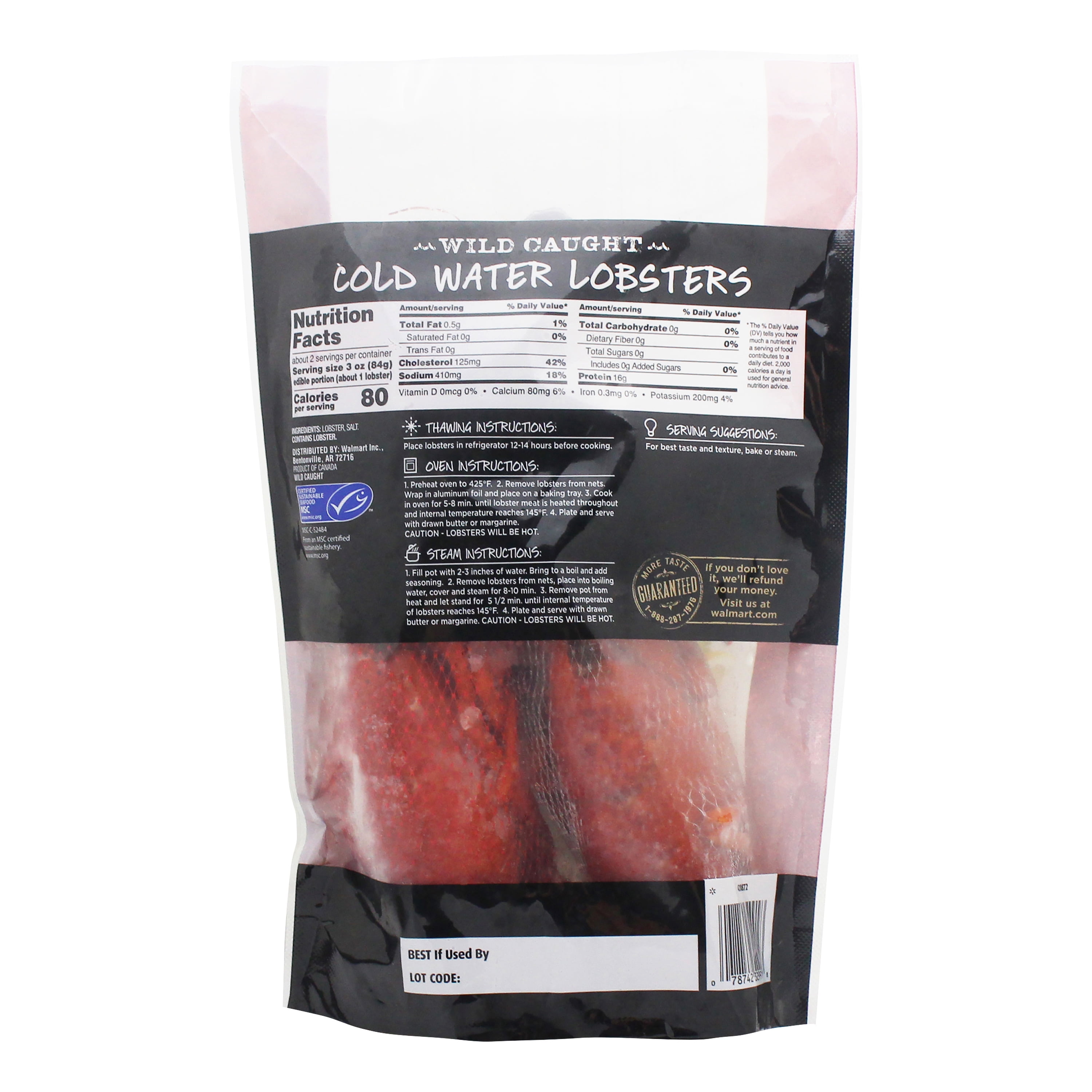 Sams Choice Lobsters are wild caught and sourced from the cold waters of the North Atlantic Ocean. These lobsters are fully cooked in their shell to preserve their natural mild, sweet flavor. Preparation is quick and easy. Just thaw and heat, making them perfect for any level of cooking skill. Enjoy with drawn butter or margarine. These lobsters are 100% sustainably sourced, and come from a fishery certified as sustainable by the Marine Stewardship Council, making it a responsible seafood choice. Enjoying your favorite seafood is easy with Sams Choice Frozen Wild Caught Cold Water Lobster.