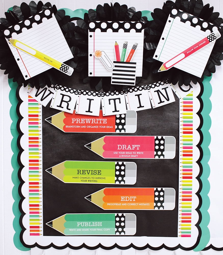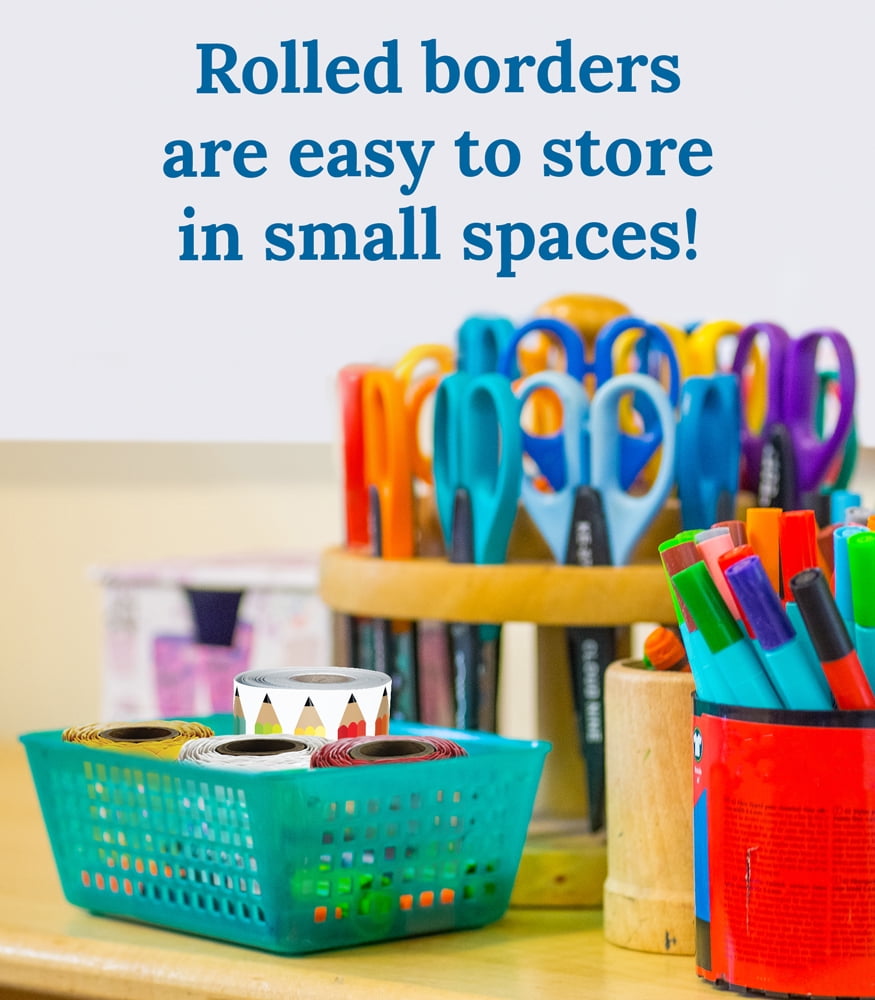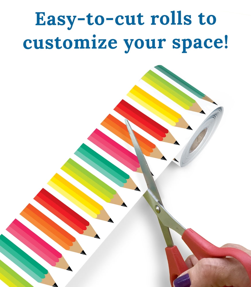 Give your bulletin board displays the perfect finishing touch with eye-catching border trim. The Black, White and Stylish Brights Pencils Rolled Straight Border features one continuous border roll, measuring 3" x 36′. Great for year-round use, this straight border features a line of colorful, sharpened pencils on a crisp white background for a home-sweet-home look on displays. Printed on thick but flexible paper, this border roll is easy-to-customize and adds the perfect touch of style to bulletin boards, desks, storage, and so much more. Cut and layer borders to add dimension or use individually for a classic style. Classic classroom themes are back with the fun and trendy Black, White and Stylish Brights collection. Schoolgirl Style’s line of trendy classroom accessories helps take the guesswork out of styling and managing classroom design. Each collection, designed by Melanie Ralbusky, offers a signature look that will transform empty spaces into extraordinary spaces for students to enjoy.