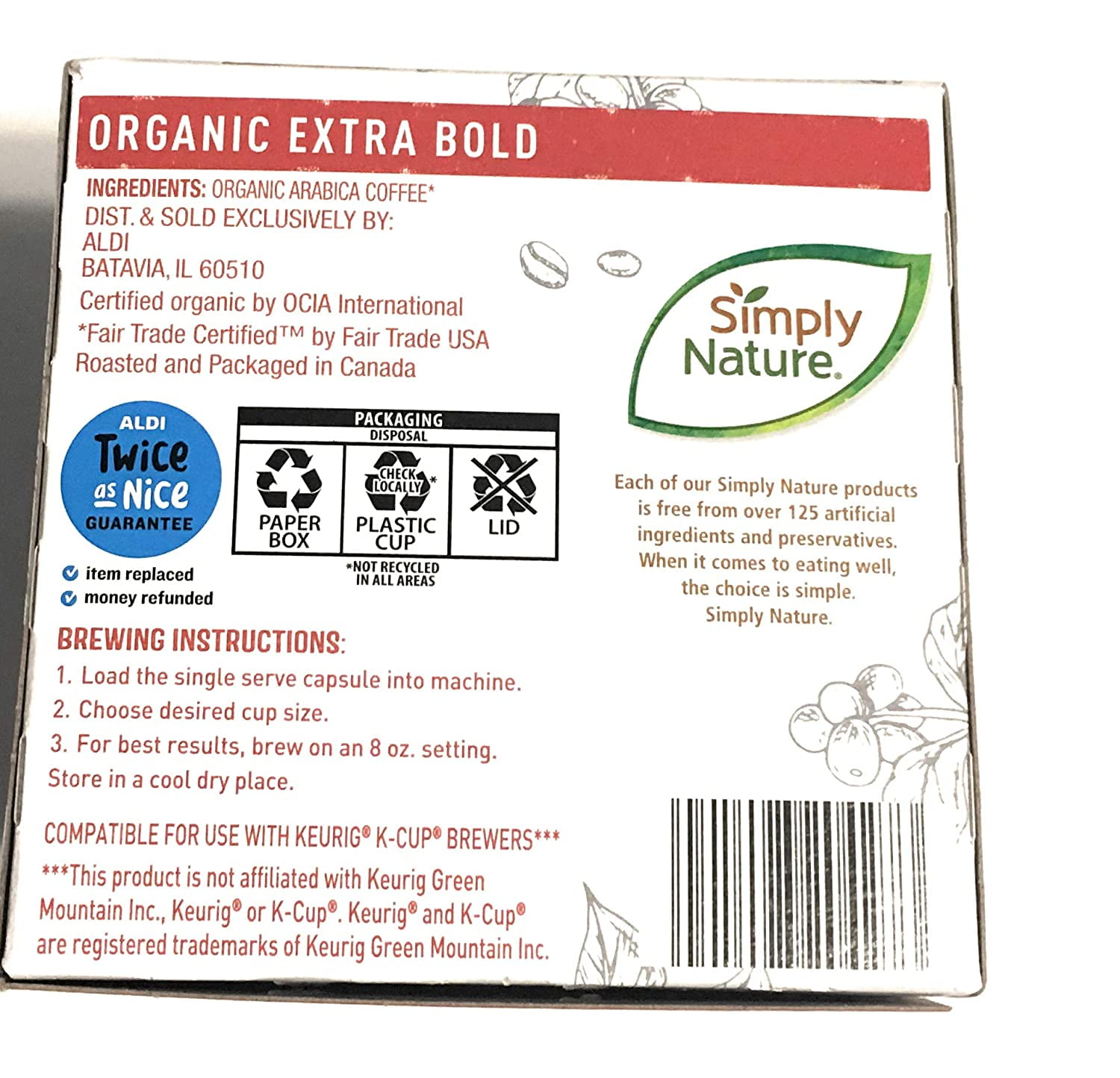 Simply Nature Organic Extra Bold coffee. Medium roast single serve cups. 12 pods per box. 2.0 compatible. USDA organic. Non-gmo. Fair Trade coffeesimply nature organic extra bold coffee