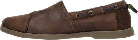 Smart versatile style and warm comfort come in the SKECHERS BOBS Chill Luxe – Buttoned Up shoe. Smooth faux leather upper in a slip on casual alpargata flat with stitching accents and cinch collar. Memory Foam insole. BOBS helps make a difference for animals and kids