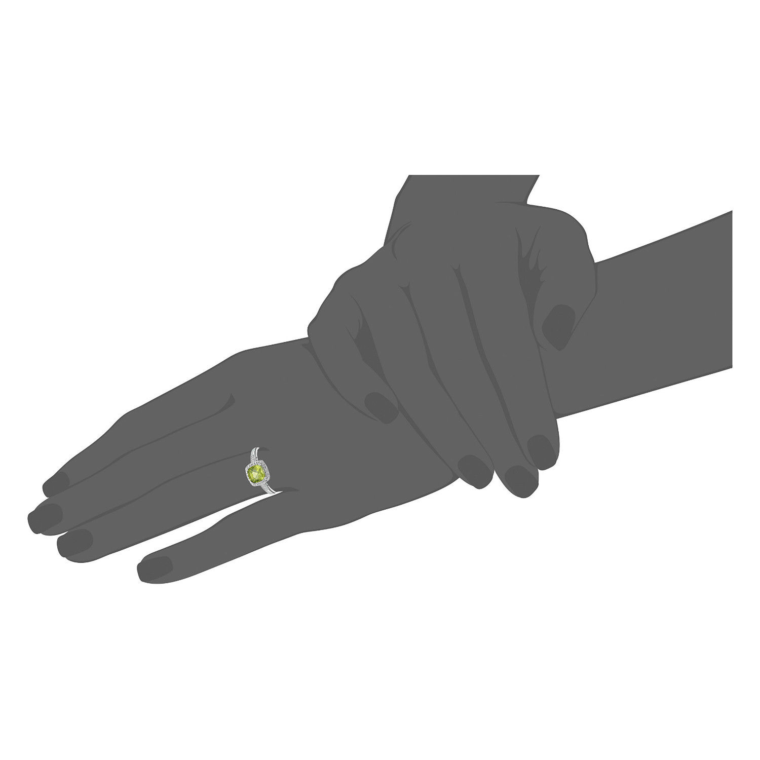 Sterling Silver Cushion Peridot & Diamond Engagement Ring, Size 7