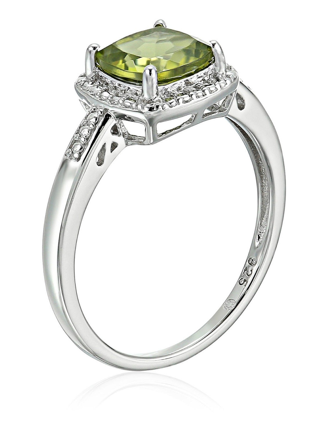 Gem Type peridot;diamond;Minimum total gem weight 1.25 caratsSetting ProngsTotal metal weight 2.4 GramsRing size 7Resizable NoNumber of stones 2Stone Weight 1.25 caratsModel number R7052WPERIMetal InformationSterling SilverMetal Sterling SilverMetal stamp 925 sterlingMetal Weight 2.40 GramsStone InformationPeridotStone Weight 1.25 caratsMinimum color not applicableMinimum clarity Not ApplicableNumber of stones 1Stone shape Cushion cutCut Very good cutStone Creation Method NaturalStone Treatment Method Not treatedStone Length 7 millimetersStone Width 7 millimetersposition CenterDiamondStone Weight 0.004 caratsMinimum color I-JMinimum clarity I2-I3Number of stones 1Stone shape Round shapeCut Very good cutStone Creation Method NaturalStone Treatment Method Not treatedStone Length 1 millimetersStone Width 1 millimetersposition Surround