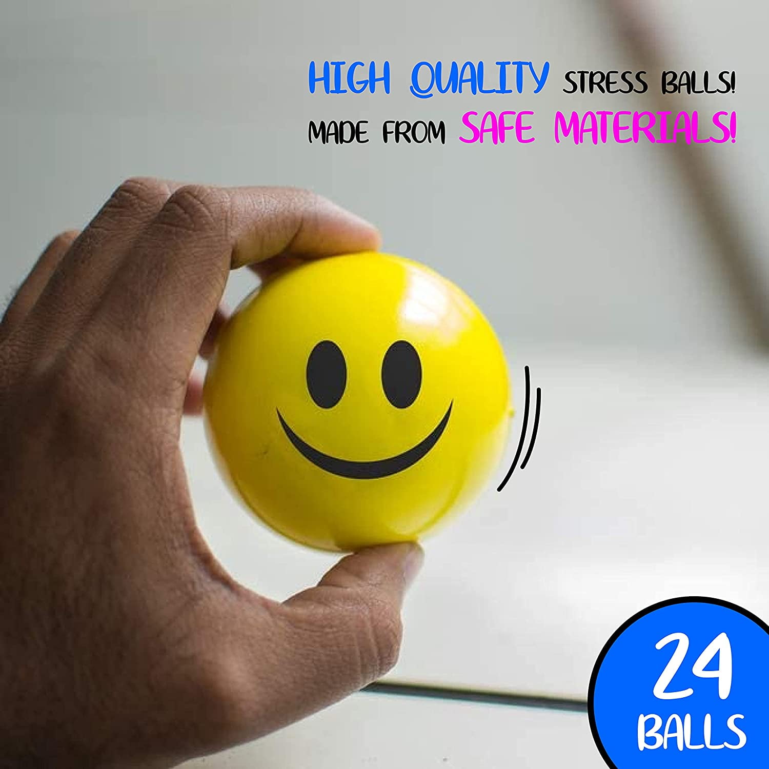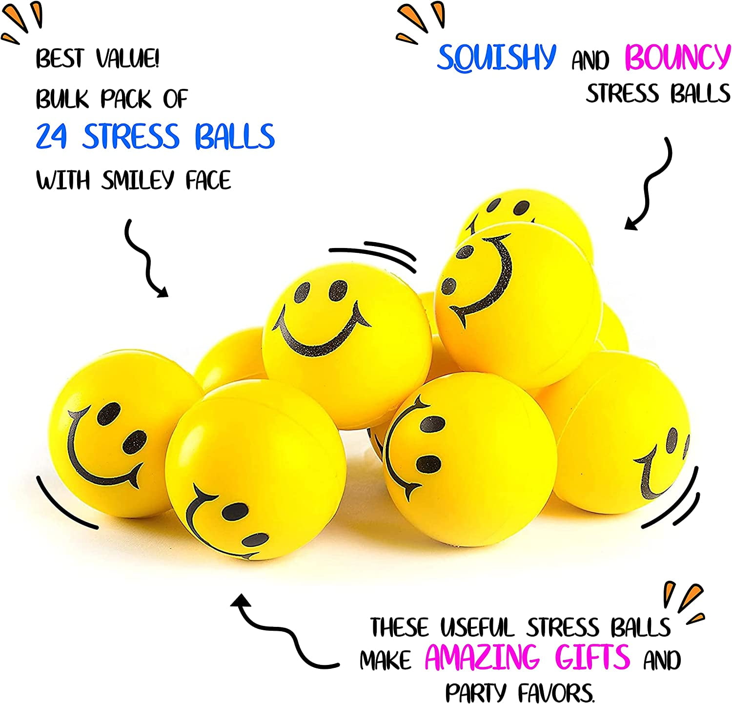 Stress Balls For Kids And Adults – Ideal Bulk Pack Of 24 2′ Stress Smile Balls – Neon