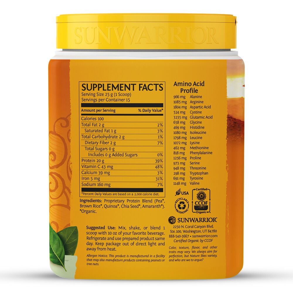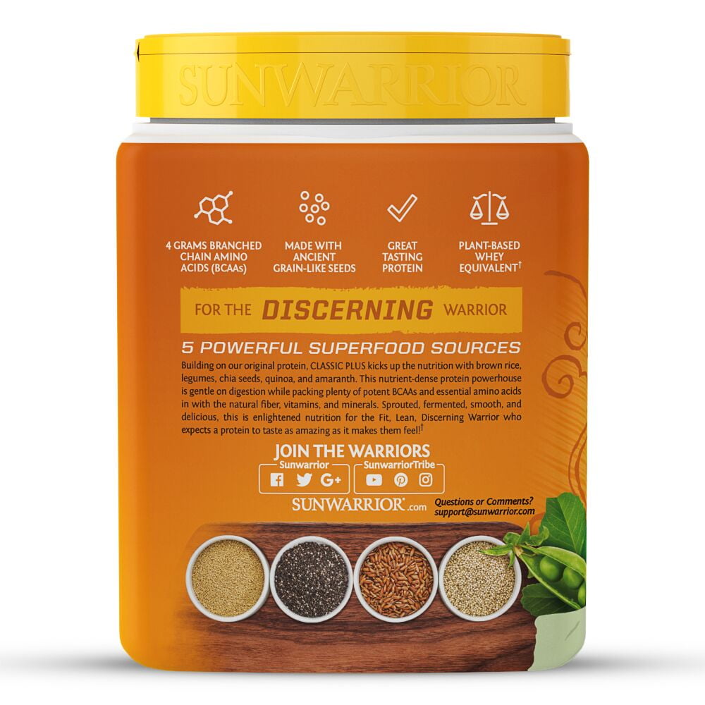 Organic Certified Classic Plus builds on Sunwarrior’s original rice protein by adding in the amino acid balancing effects of peas, chia seeds, quinoa, and amaranth.Sunwarrior Classic Plus Plant-Based Protein, Natrual, 15 servings