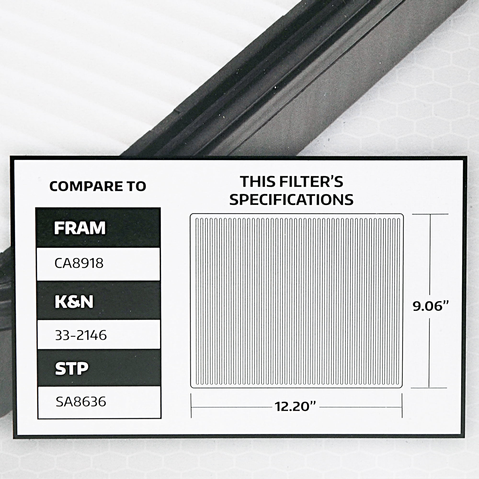 - Actual filter size: 12.20 x 9.06 inches