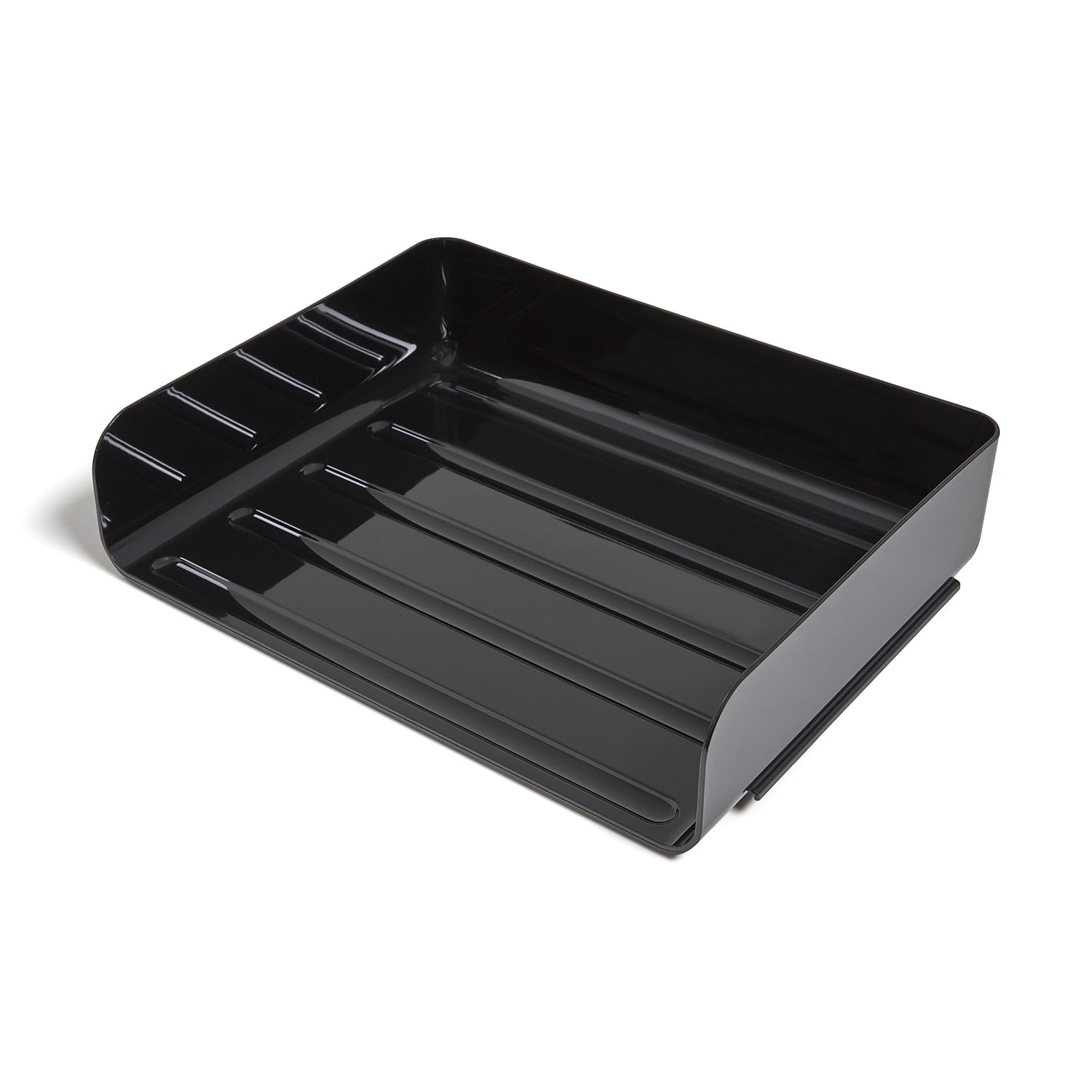 Build a customized document storage setup with this 6-pack of TRU RED black side-load letter trays. Prevent piles of paperwork from overtaking your workspace with these letter trays. The stacking design lets you create the configuration that makes sense for your business, while the side-load format offers easy access to forms, file folders, and notepads. Featuring a neutral color and simple design, these TRU RED black side-load letter trays make a handsome addition to a desk, printer stand or credenza.