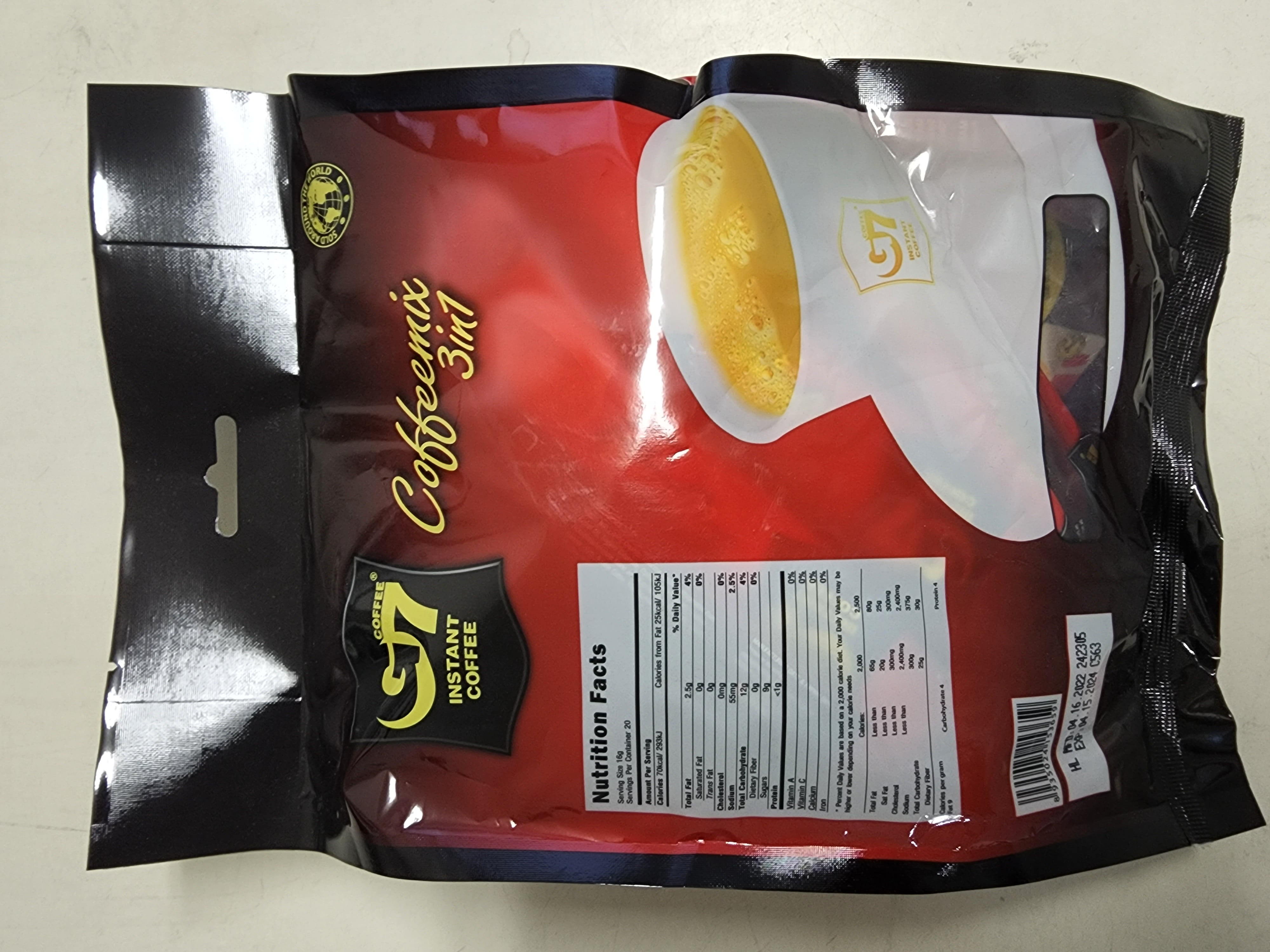 Trung Nguyen G7 3-in-1 Instant Premium Vietnamese Coffee, 20 Servings/Satchets