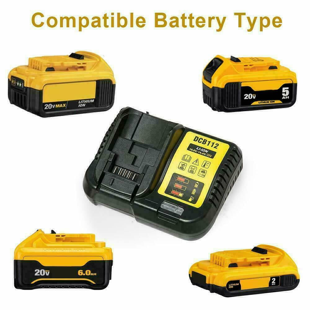 DCB112 12V 20V MAX Lithium Ion Battery Charger for Dewalt DCB206 DCB205 DCB204 DCB203 DCB201 DCB200 DCB120 DCB127 DCB230, Replace for DCB107 DCB105 DCB101 DCB115