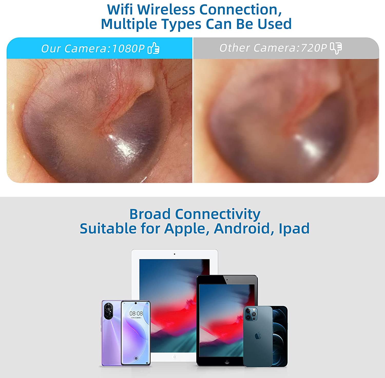 Wide Range Compatibility: The ear wax removal kit is not only use in your ear , but also can be in your mouth, nose,and throat. As well, if you want use it for your pets, it is also very suitable. All you need to do is to connect it with your phone WiFi, and the otoscope can adapt with IOS and Android operating system phone and tablet.