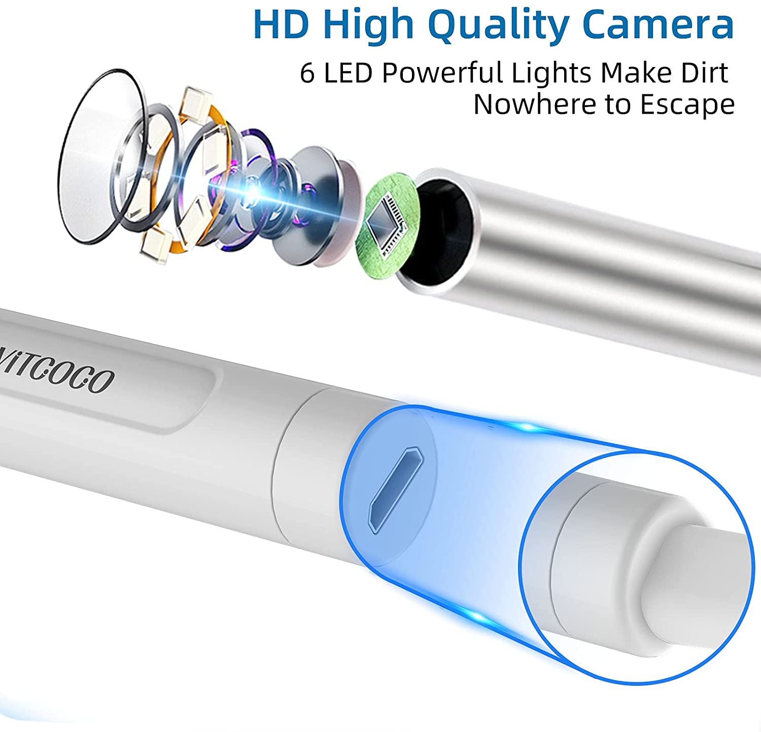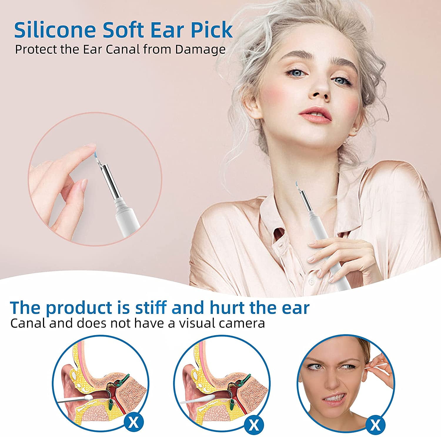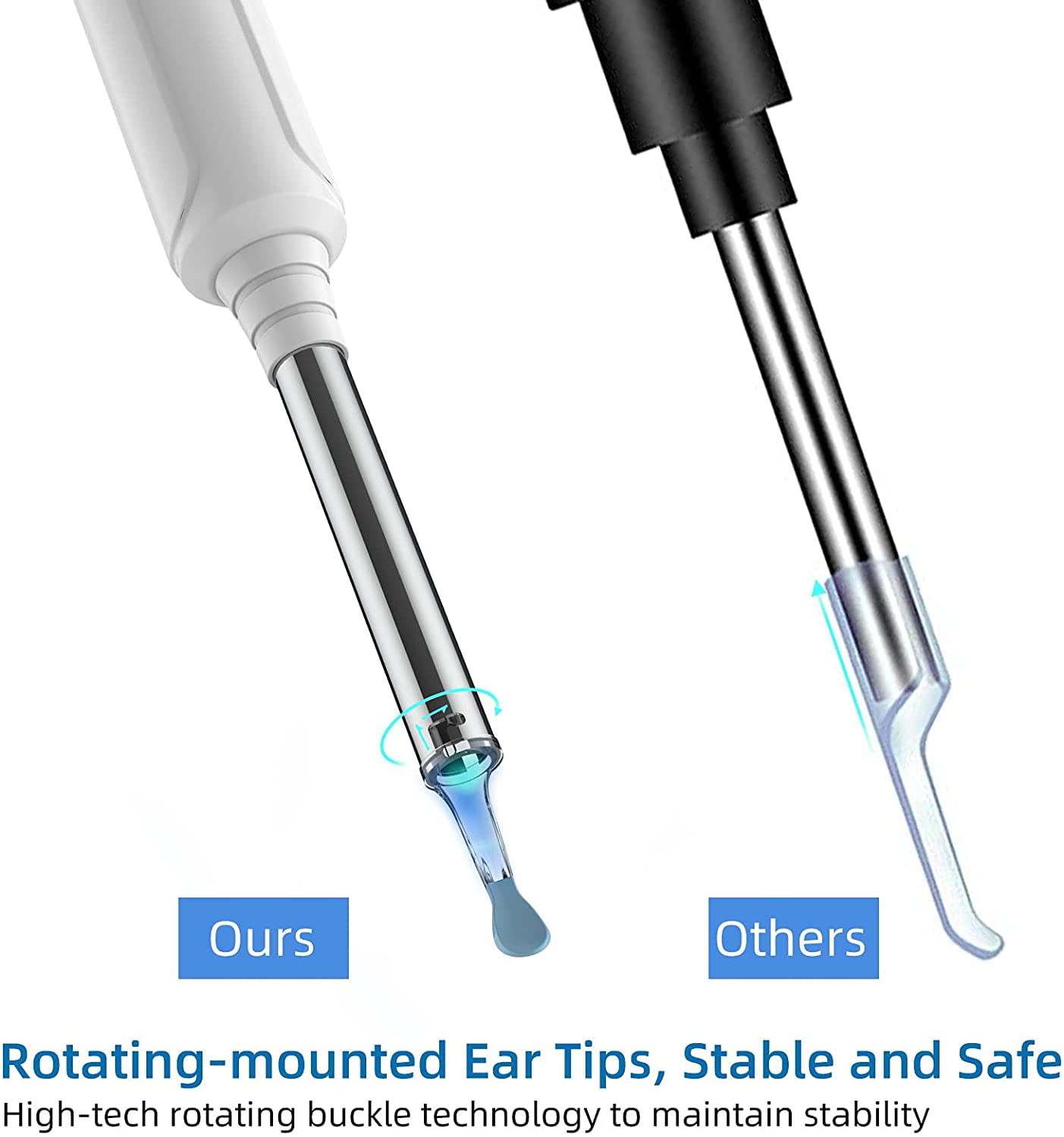 Soft Ear Spoon Materials: The ear camera takes rotating-mounted buckle design which can keep the ear spoon from dropping off, you can clean your ear with it safely. The replaceable ear picks are made of soft silicone material, which is moderate softness and hardness in 360 degree, and the special arc design helps you easy to remove earwax without hurting the ear canal, comfortable and safe.
