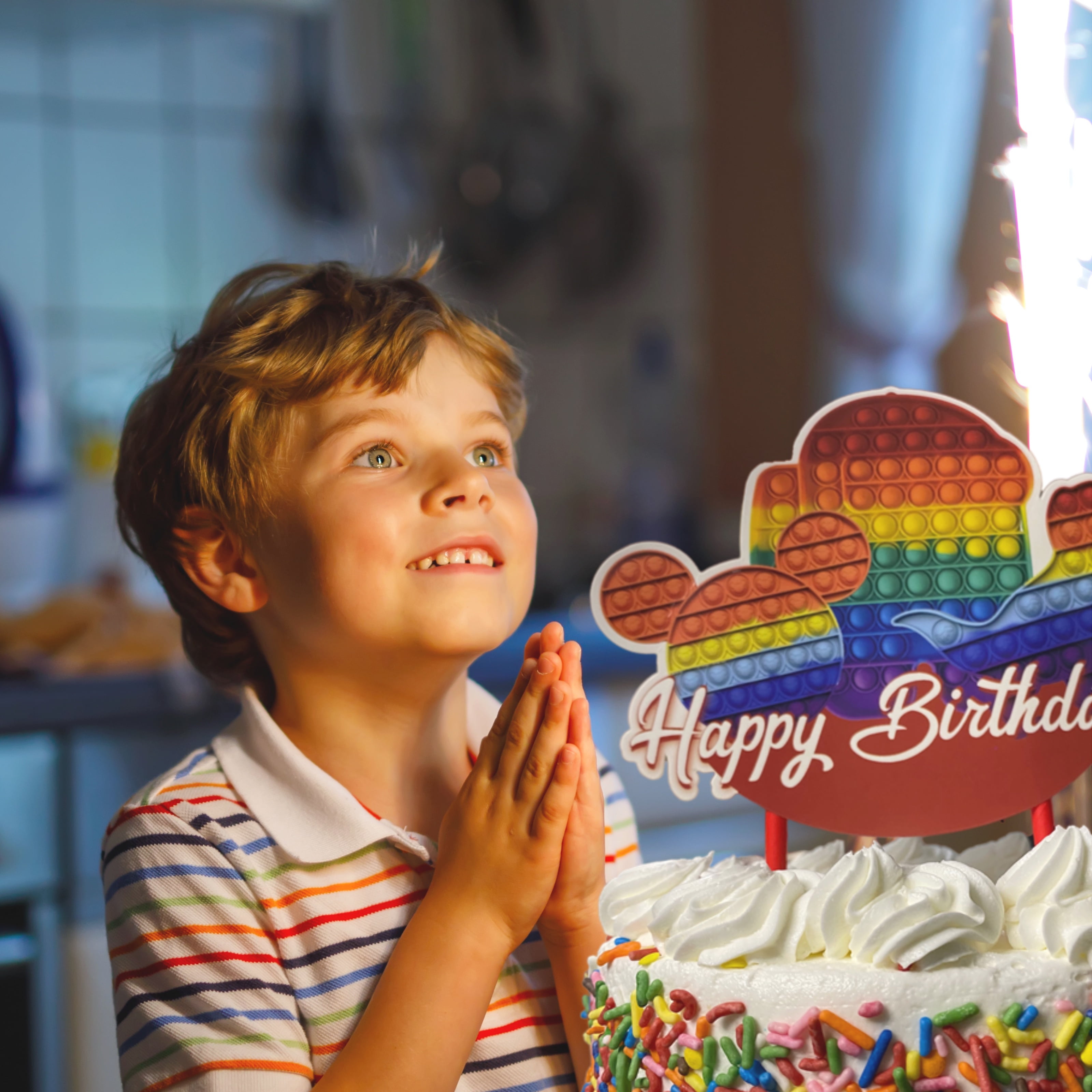 Kids birthday cake decorations featuring fidget bubble poppers are an awesome new birthday theme and one that kids will love! Decorations for cakes don’t get much better or more fun than a red rainbow dinosaur, mouse and Among Us shapes. Adorno de pastel es esencia. The cake is the most important part, that’s where the guest of honor gets to blow out their candles and make a wish. Now it can be even more special and more unique with these among us cake decorations with adjustable cake inserts, made from straw, so you can cut them to your desired height. Everyone at the among us party will be talking about how beautiful your cake looked with this fidget bubble popper birthday cake topper.