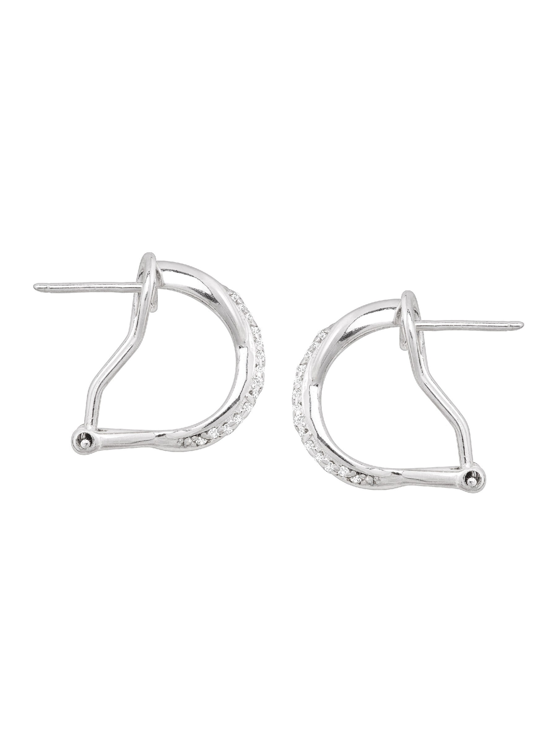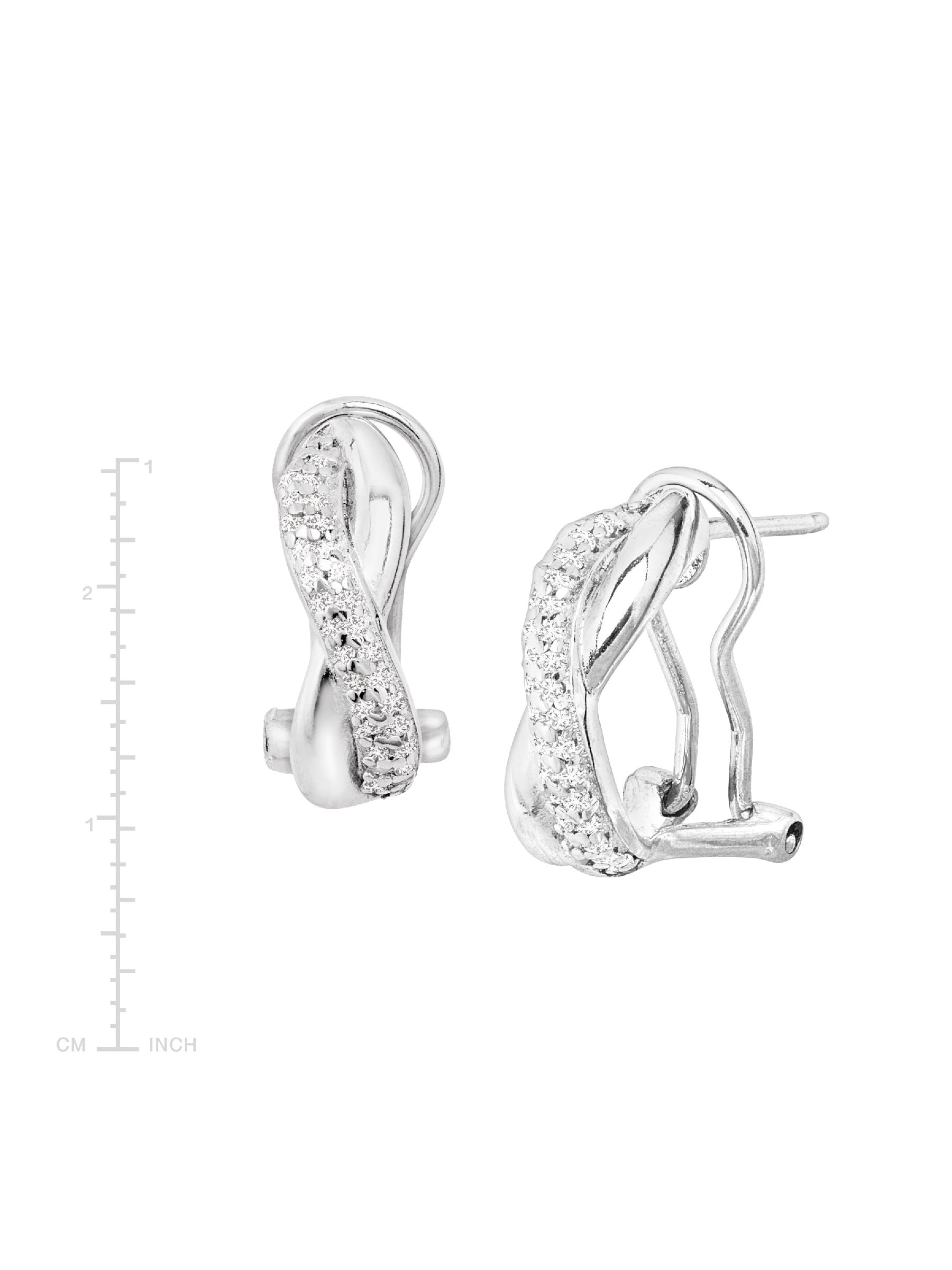 Add these small hoop twist earrings to your collection! An overlapping ‘X’ design is half diamonds, totaling 1/2 ct, and half sterling silver, complete with Omega back findings. Pieces measure 5/8 by 1/4 inches. The piece comes with a ".925" sterling silver stamp as a symbol of guaranteed product quality.