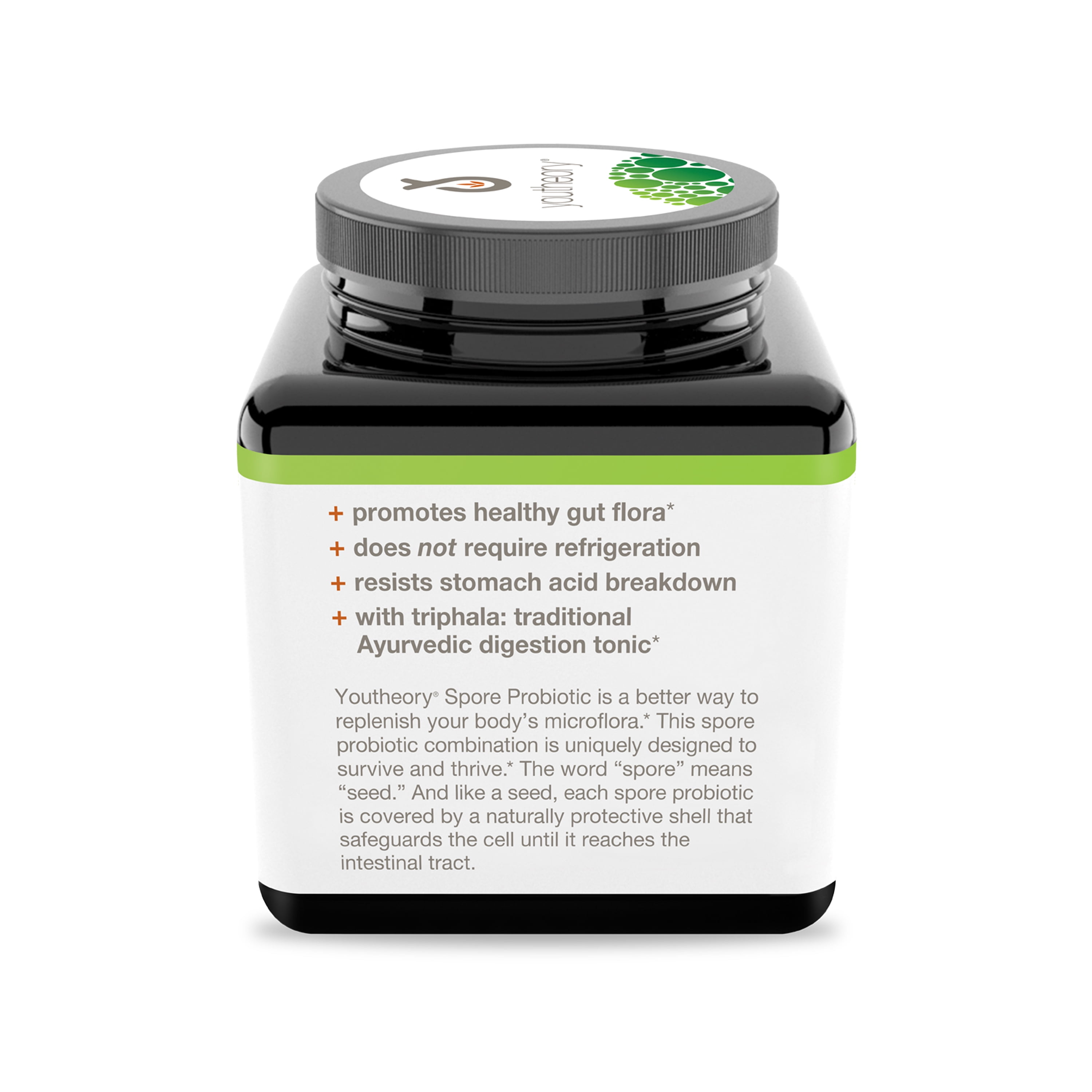 Youtheory Spore Probiotic is uniquely designed to survive and thrive.* The word “spore” means “seed.” They are extremely stable organisms that remain protected in a dormant state until they arrive safely in the intestinal tract to colonize, grow and proliferate.* This advancement is simply a better way to replenish the body’s microflora offering multiple advantages over traditional probiotic preparations.