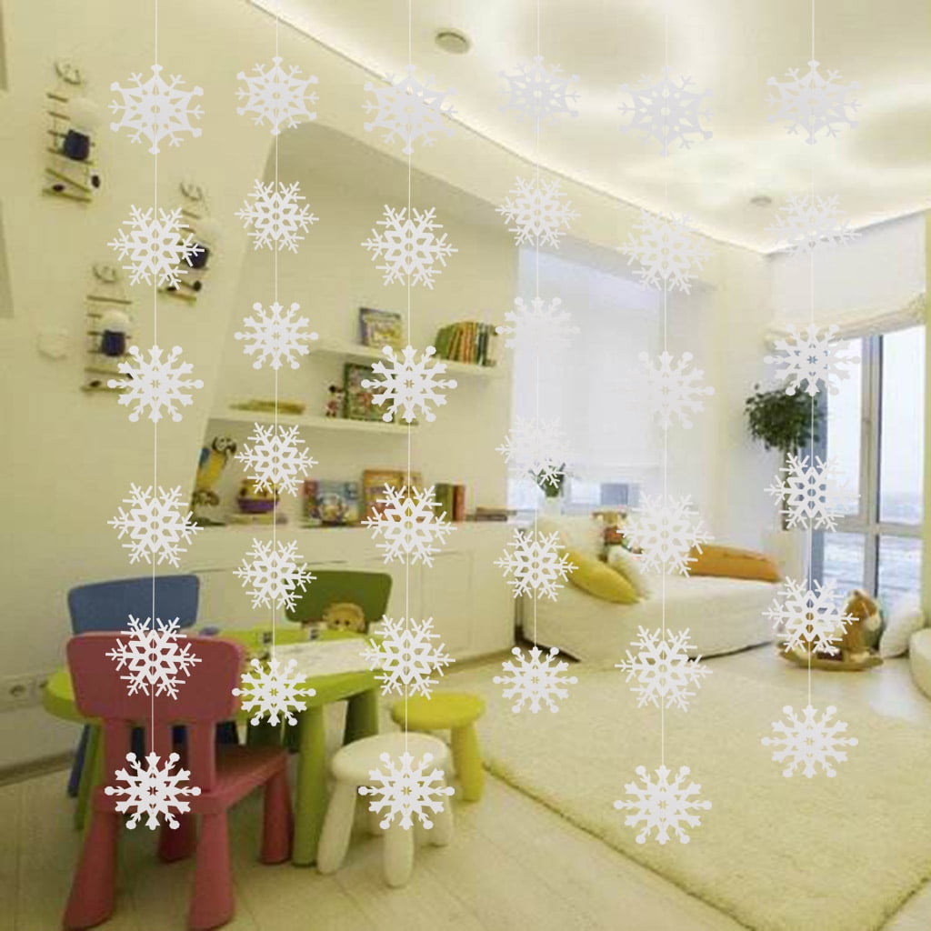 Snowflake Hanging Ornaments White Snowflake Garland Christmas Snowflake Banner Decorations Wonderland Ornaments Winter Frozen Birthday Party Supplies