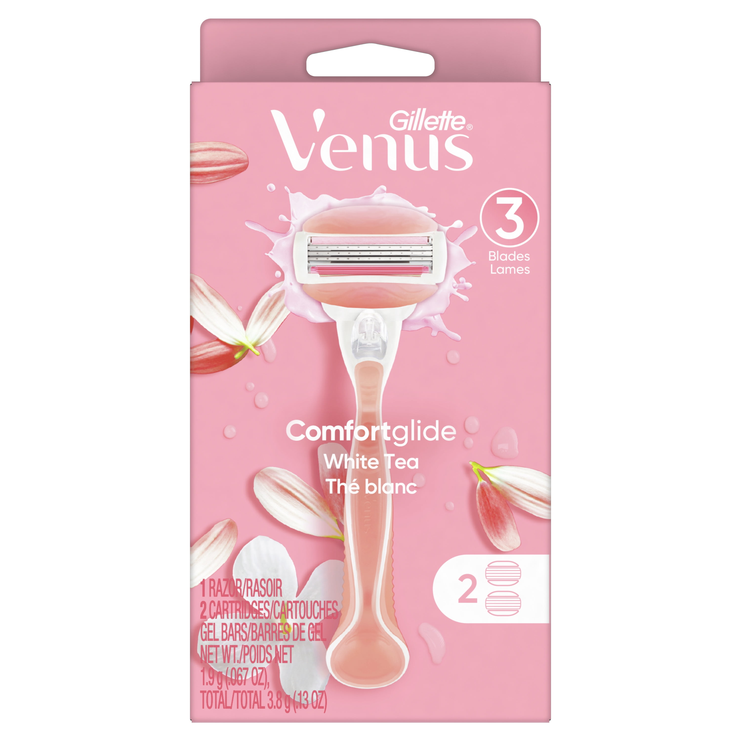 Venus Gillette ComfortGlide Womens Razor, White Tea, 2 Blade Refills