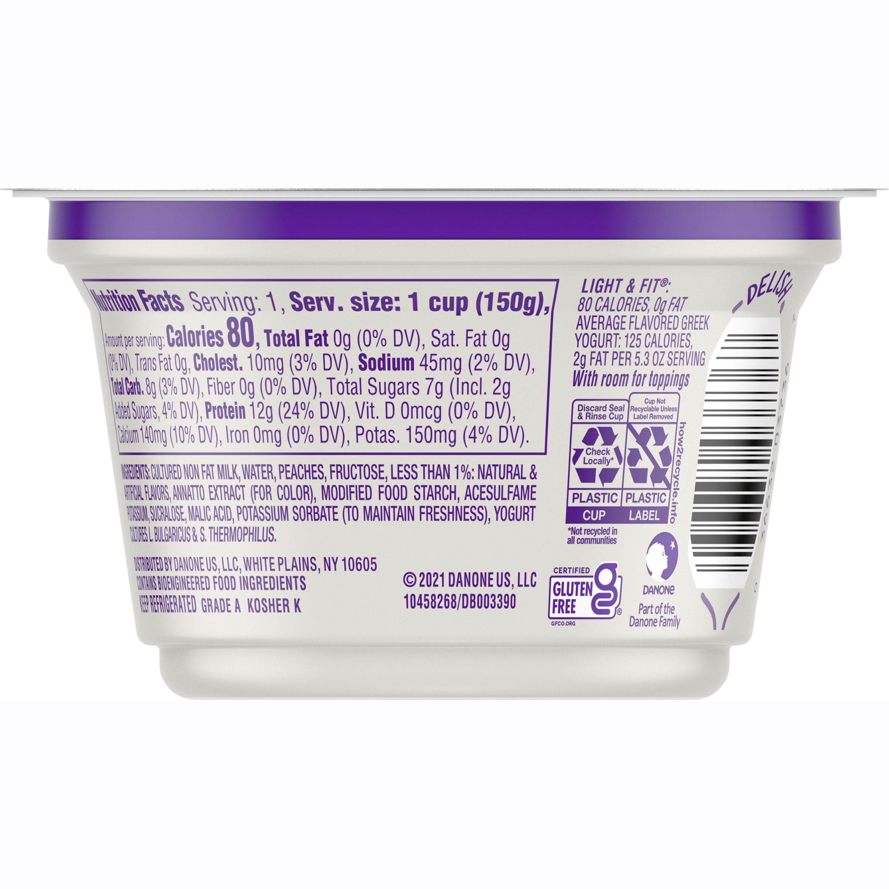 Light + Fit Nonfat Gluten-Free Peach Greek Yogurt, 5.3 Oz