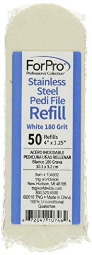 ForPro Professional Collection Stainless Steel Pedi File Refill, 180 Grit, White, EZ-Strip Peel Pedicure Refill Pads, 1.25? W x 4? L, 50-Count