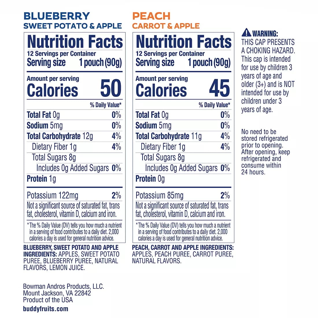 Buddy Fruits Blended Veggie and Fruit Pouches Variety Pack, 24 ct