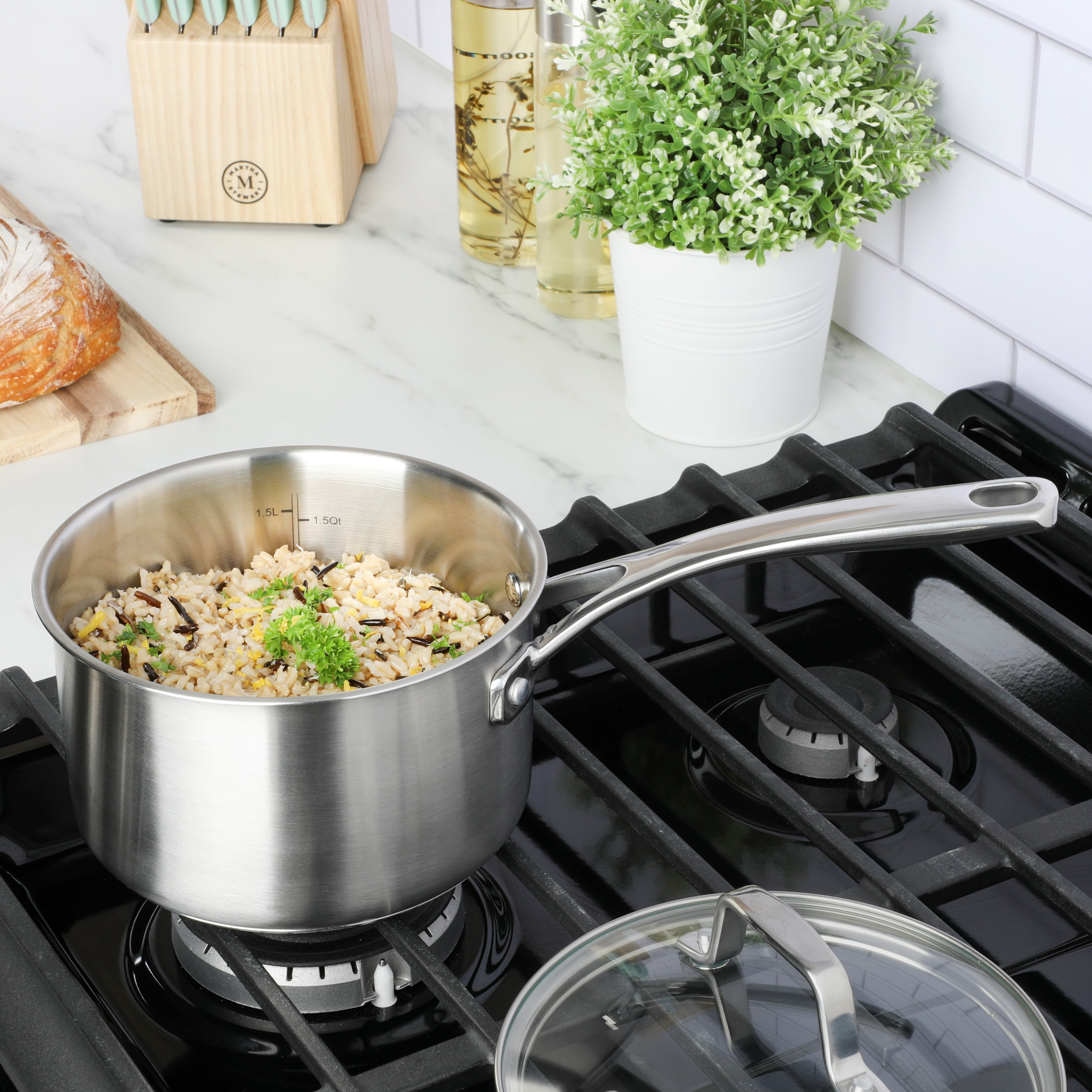 Martha Stewart Everyday Silverberry 2-Quart Matte Silver Stainless Steel SaucePan with Lid