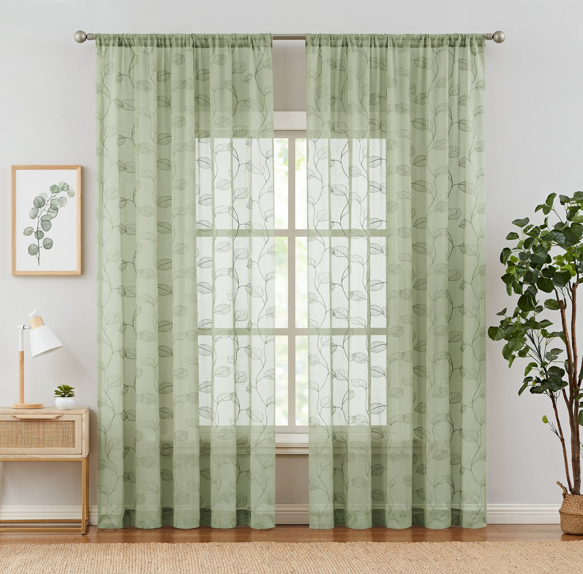 CURTAINKING Sheer Curtains for Living Room Embroidered Leaf Window Curtains 84 inch Length light Filtering Drapes Bedroom Rod Pocket 2 Panels Sage