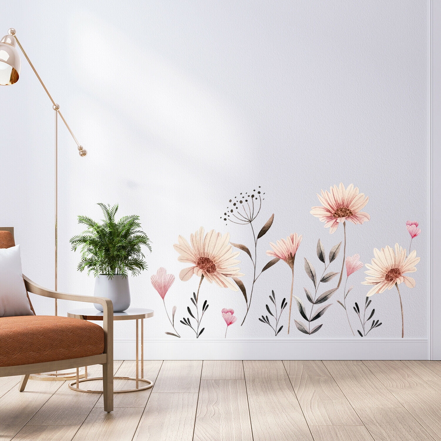 Walplus Delicate Watercolour Flowers Peel and Stick Wall Decals 59.06′ x 21.66′
