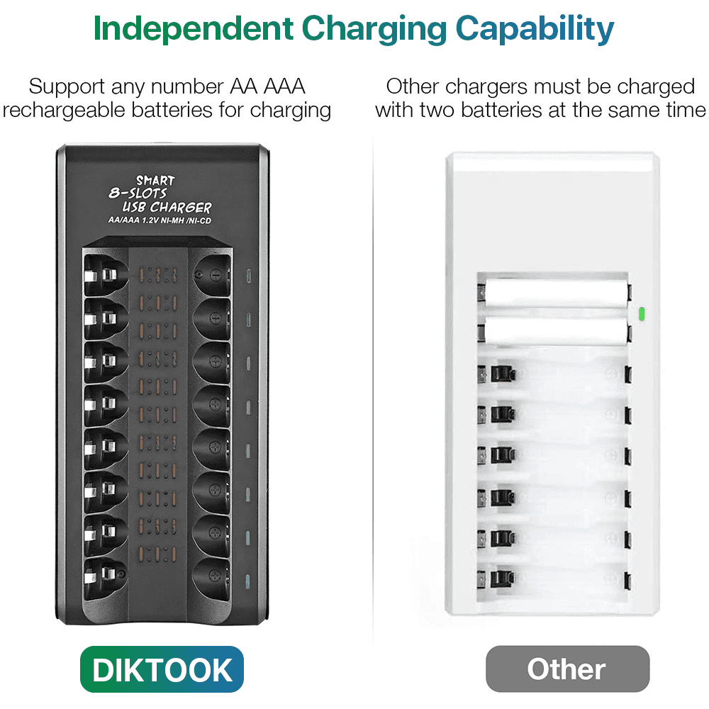 DIKTOOK AA AAA Rechargeable Battery Charger for Ni-MH Ni-CD Batteries 8 Independent Slots