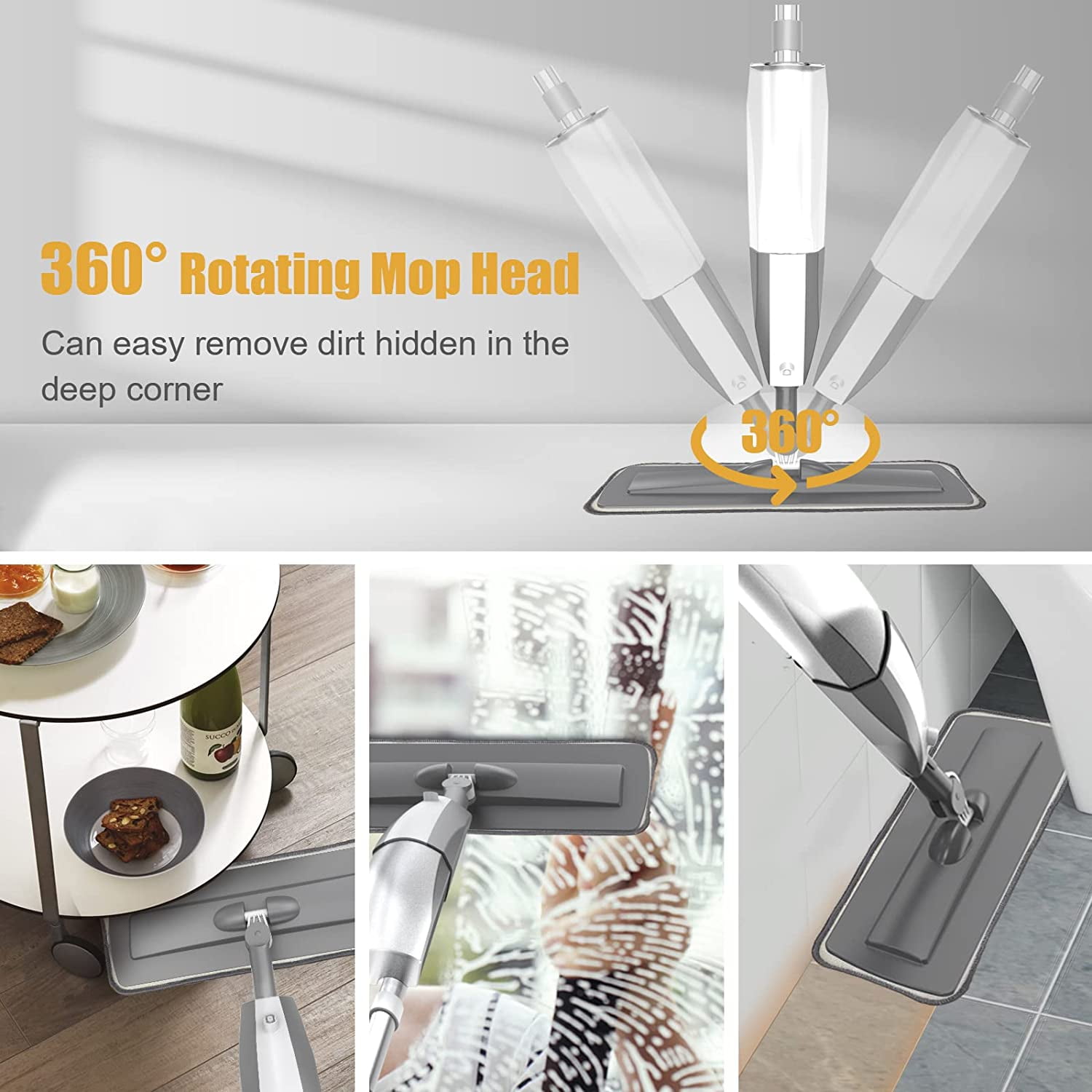 Spray Mop for Floor Cleaning – Beyoco Microfiber Dry Wet Floor Mop with 3 Pcs Washable Pads, Flat Mop with Sprayer for Wood Floor Hardwood Laminate Ceramic Tiles Dust