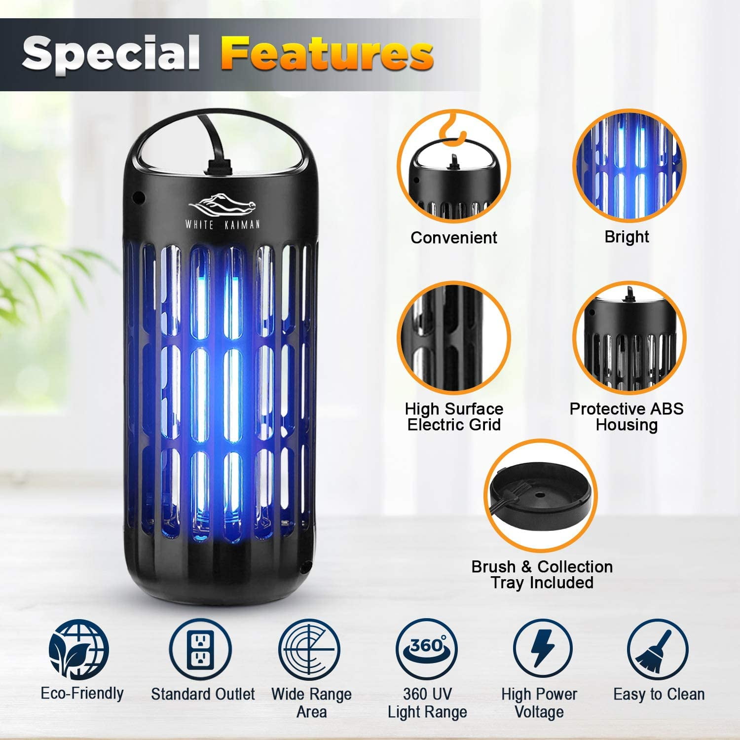 White Kaiman Insect Killer Lamp 9 Watt & 1000 Volts Bug Zapper Perfect for Standard Size Room or Covered Patio – Black
