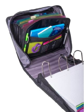 Case It Zipper Binder with Removable 5 Subject Folder, Black, D-901