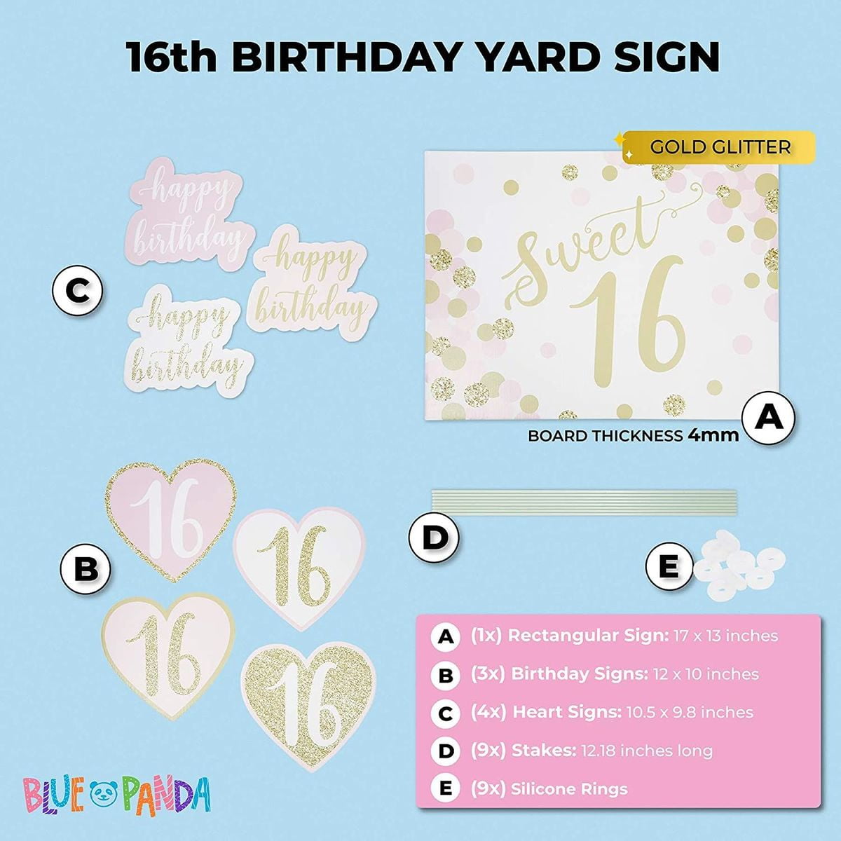 26 Pcs Sweet 16 Birthday Yard Signs with Stakes, Party Decorations, 3 Designs