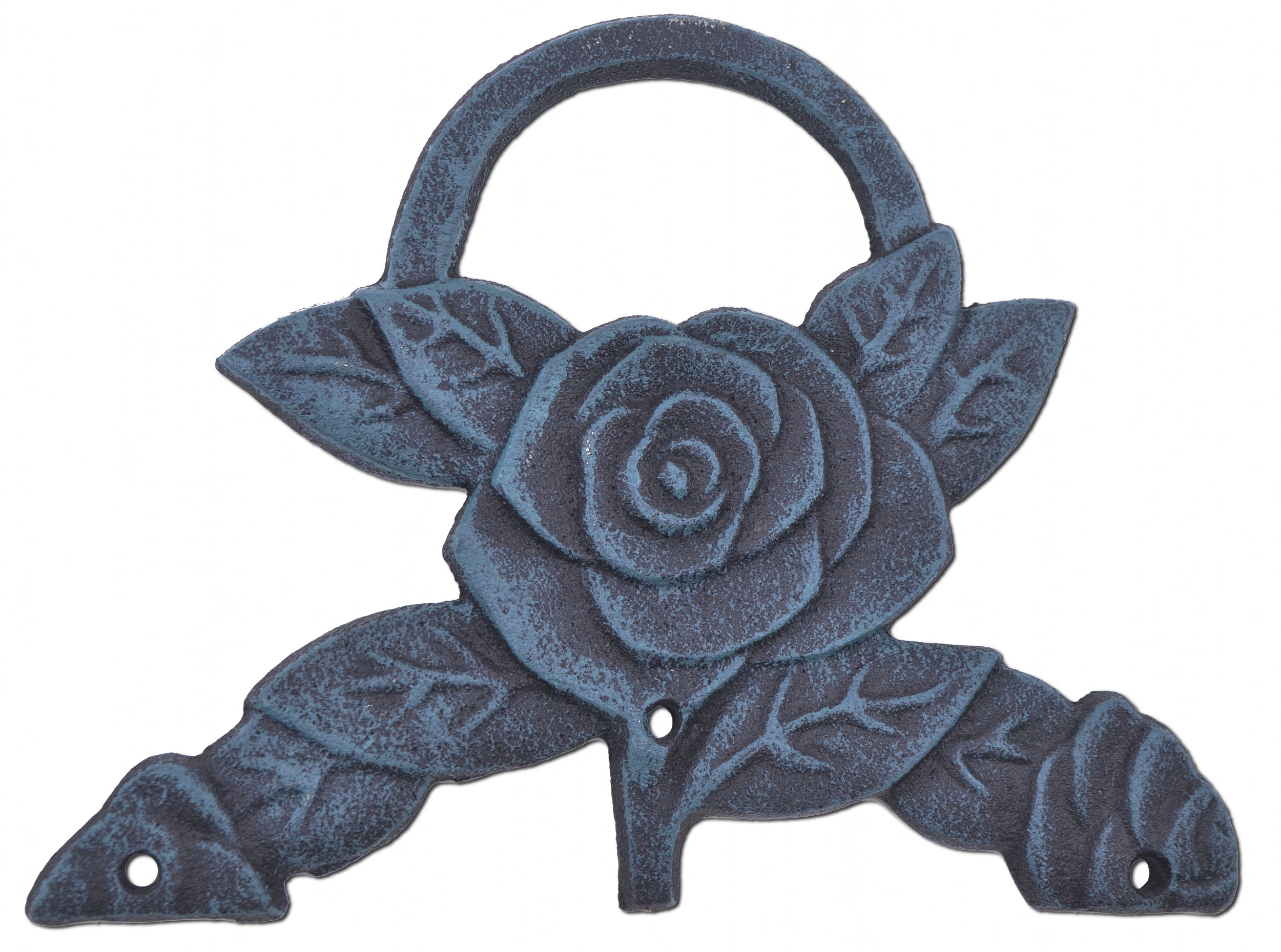 Garden Hose Holder – Rose Flower – Verdigris Cast Iron – 9.5′ Wide