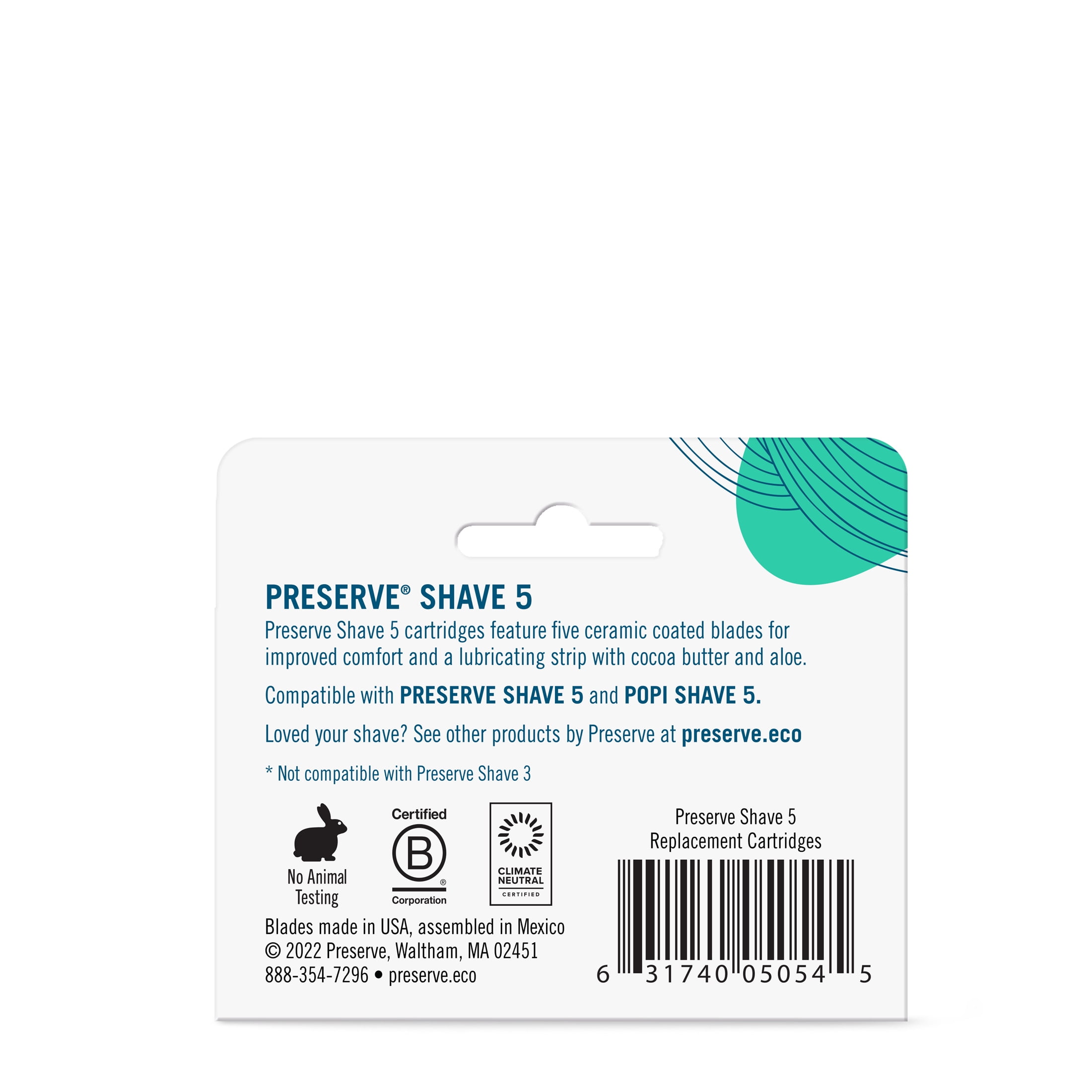 Preserve Five Blade Replacement Cartridges for Preserve Shave Five Recycled Razor, 4 Count
