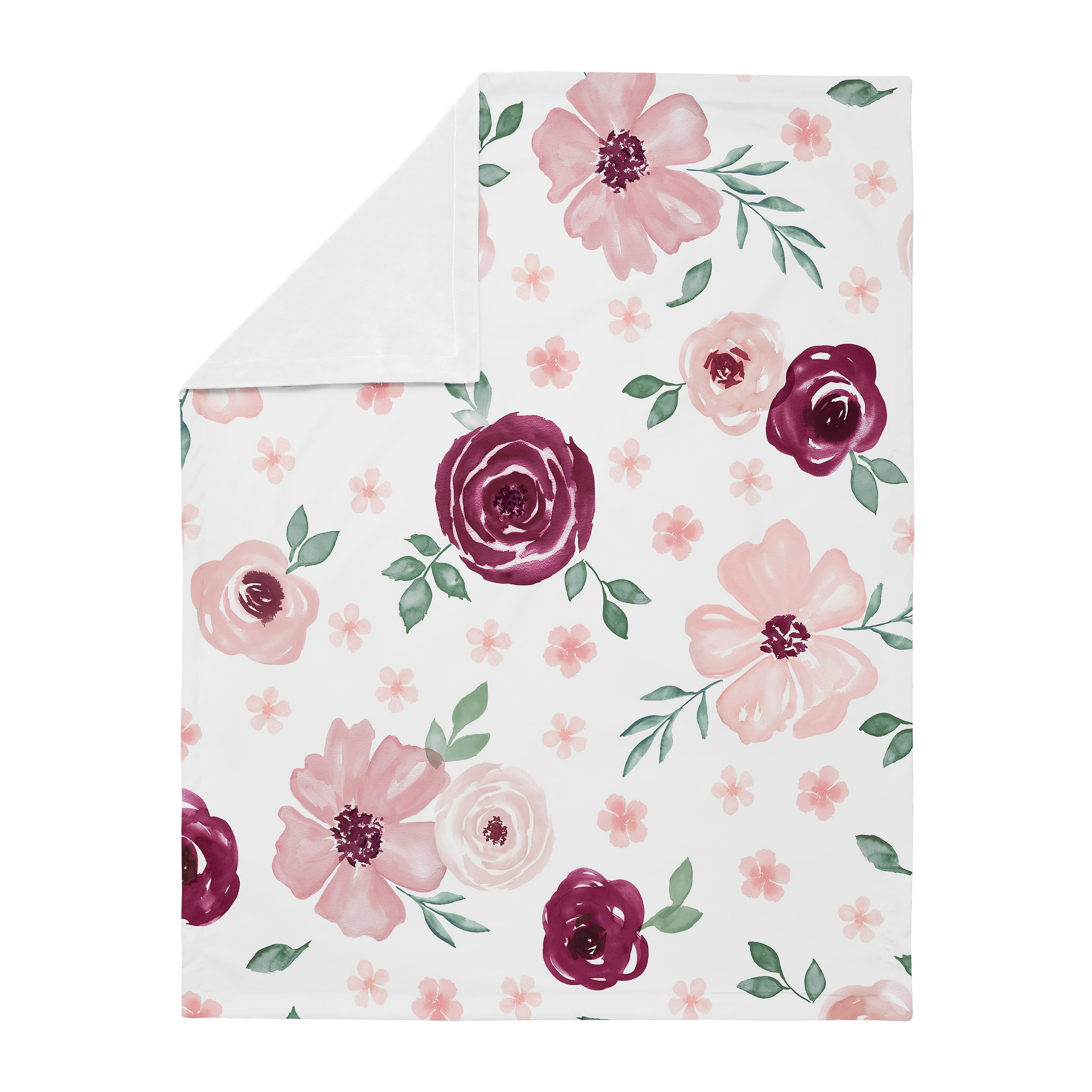 Watercolor Floral Burgundy Wine and Pink Security Baby Blanket by Sweet Jojo Designs