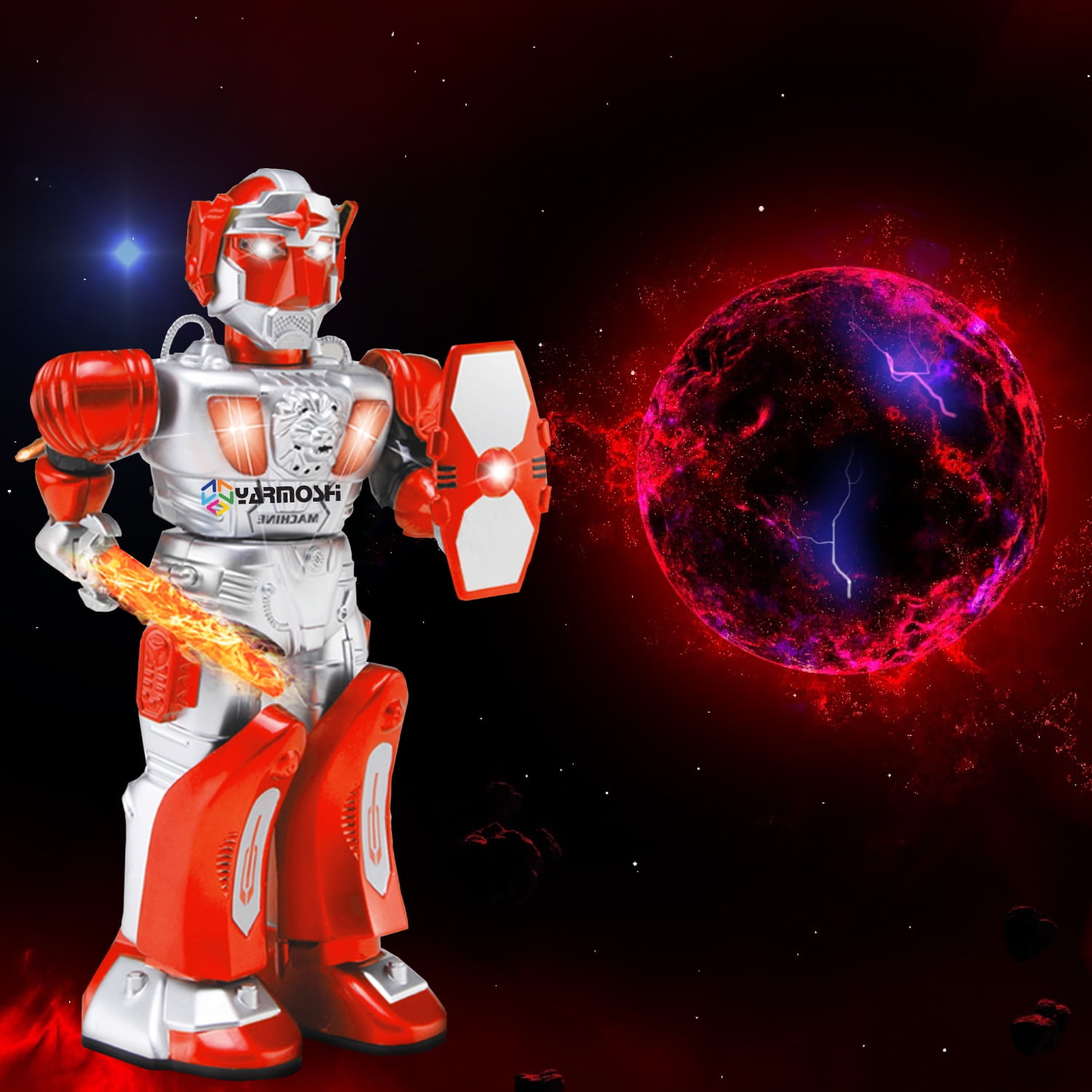 YARMOSHI Battery Operated Walking Warrior Robot Toy for Age 3+ – RED