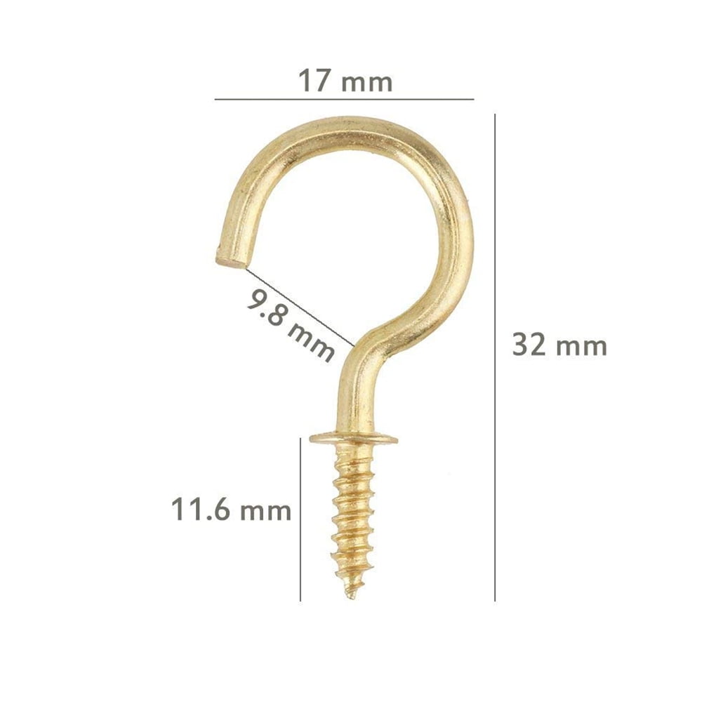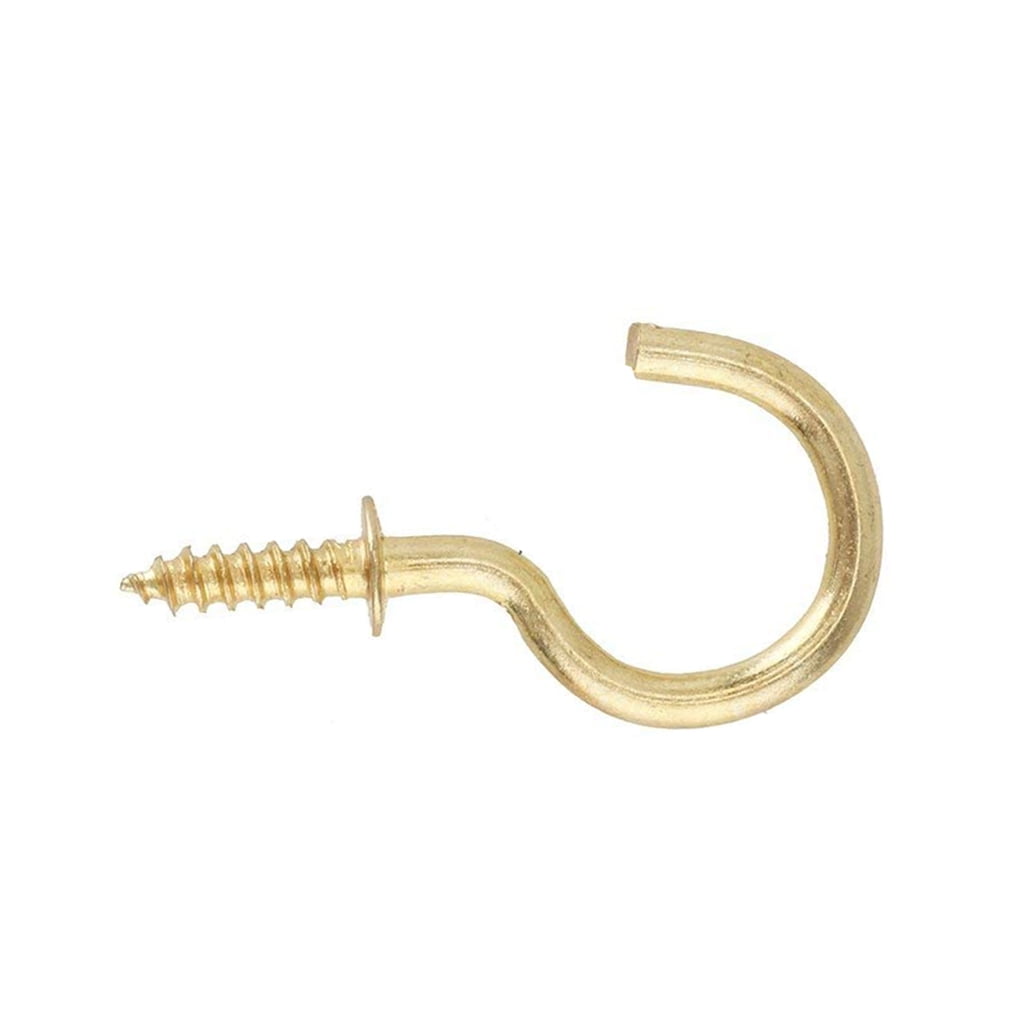 100 * Ceiling cups hooks.Brass plated cup hooks hook length can fit for many goods|Widely used: Its not only can use at indoor outdoor,office or fitting room etc,also can use for camping great to build a shelter|Compact design: Easy to carry around,fits perfectly in the pockets or case or your carrying bag|Durable: Made of steel material to ensure maximum strength and durability for long lasting usage|Perfect for securely hanging light weight items such as lights, curtains, ropes, chains, mugs, feeders, planters , kitchen towels, and more