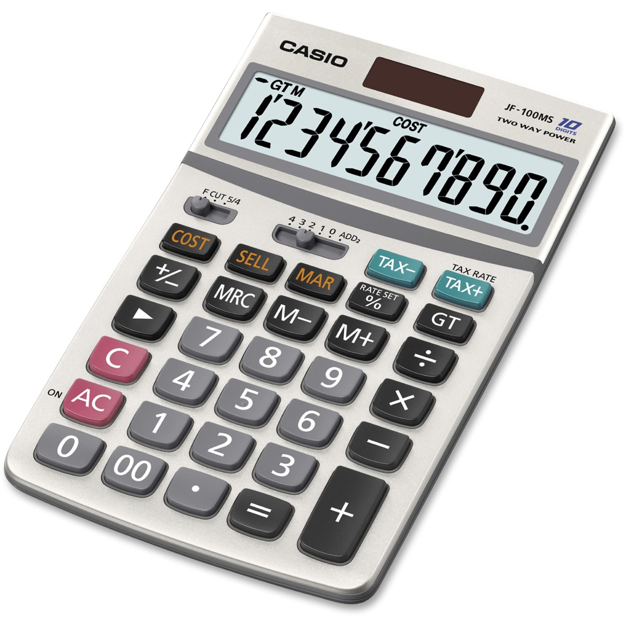 Casio JF-100MS 10-Digit Desktop Calculator, Extra Large LCD Display, Silver