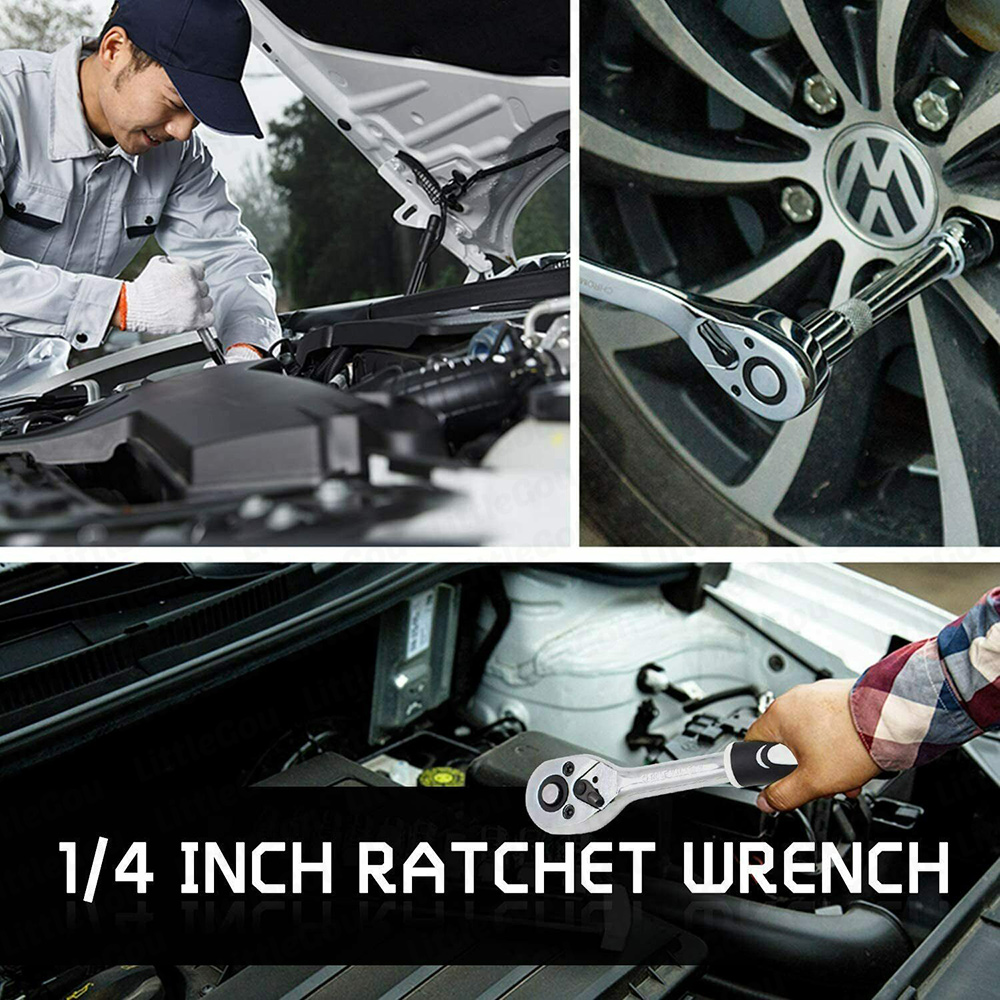 46pcs 1/4" Metric Socket Set Torx Ratchet Driver Screwdriver Bit Wrench Tool Kit