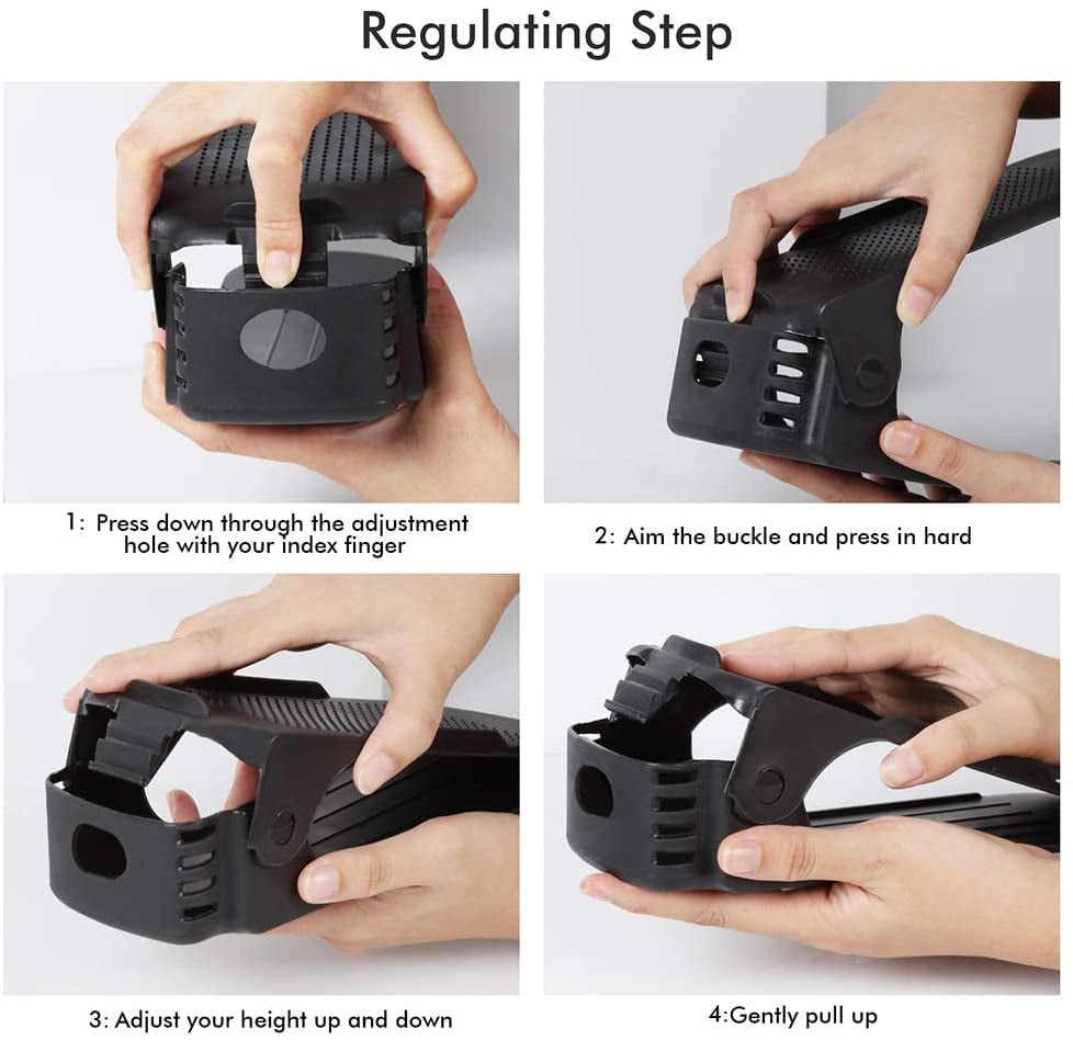 - [Adjustable Height]: The shoe organizer slot can be adjusted to three levels, 4.33”, 5.91”, and 7.09’’. You can easily store any type of shoes, such as sports shoes, high heels, slippers, and boots by simply stretching the angle so that your shoes will not be easily compressed or damaged.