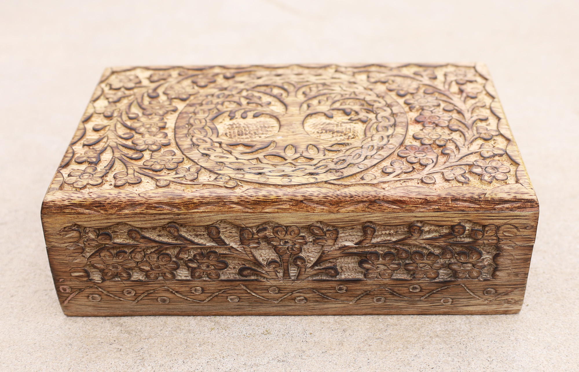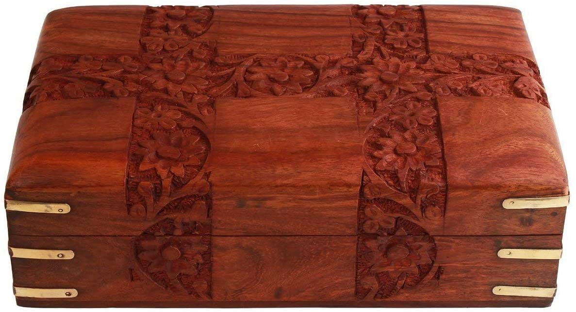 Ajuny Wooden Jewellery Box Hand Carvings Designs Keepsake Storage Organizer Handmade Decorative Trinket Holder Gifts