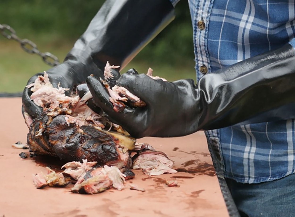 - *PRO DESIGN – Best design for Pitmasters With An Insulated Non-Slip Five Finger Design Manage Hot Meats In your Smoker, Rotisserie or BBQ and make pulled pork. The 14" length adds extended protection for most of your arm. Just as useful in the kitchen as they are grilling or frying.