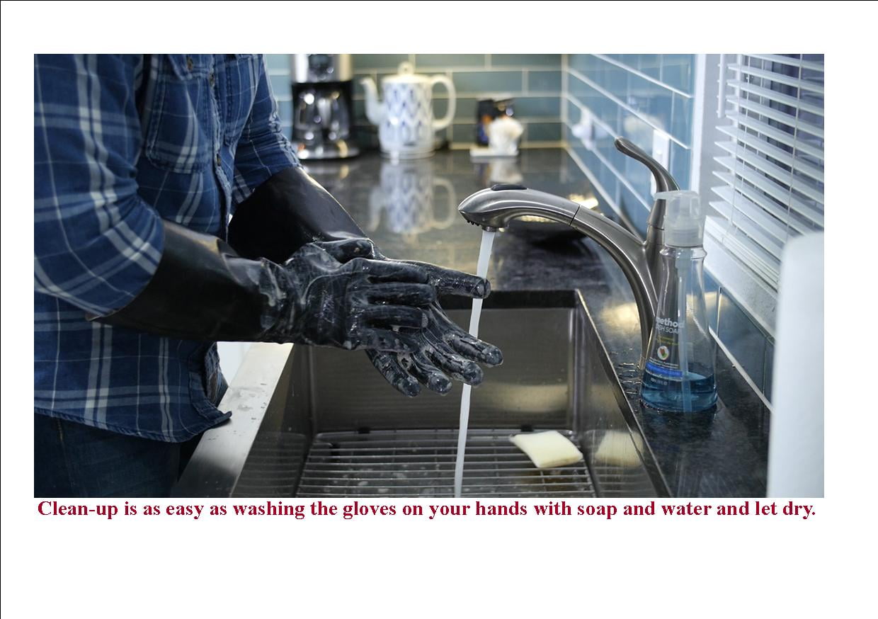 - *PREMIUM NEOPRENE COATING – The FDA compliant neoprene rubber coating is waterproof and offers great flexibility while offering max protection from boiling water and steam – over knitted gloves. The waterproof neoprene coating on this glove is resistant to heat, grease, oil, water and stains. They are much more flexible than silicone and just as easy to clean – just wash on your hands and hang to dry