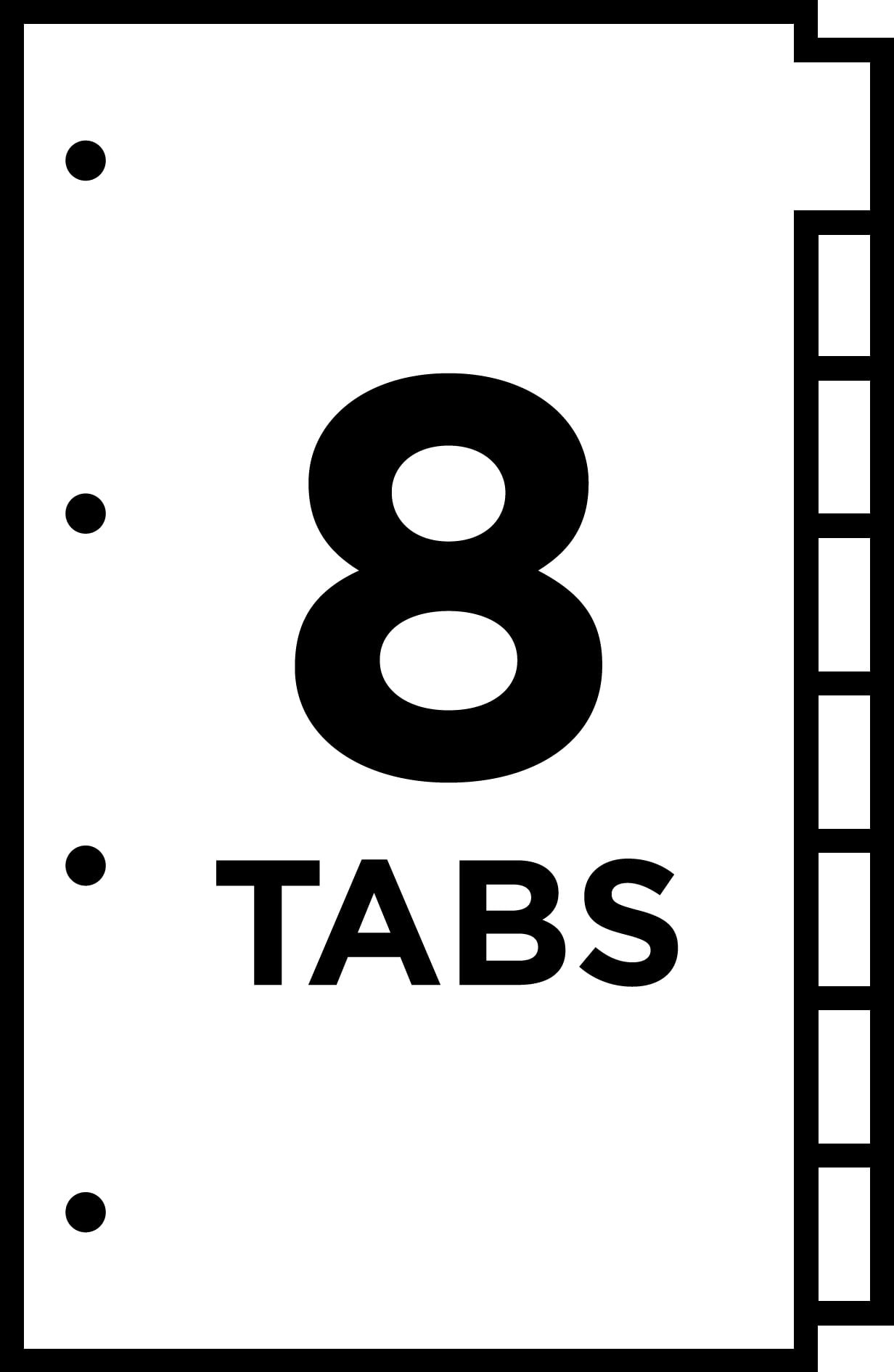 Special tab design enables easy insertion and removal, but keeps insert securely in place. Single-sided gold-reinforced edge provides extra durability. It’s easy to customize inserts using free templates from Avery Design & Print. Legal (8 1/2" x 14") dividers are 4-hole punched for legal-size binders. Handwrite or print inserts on laser and inkjet printers.