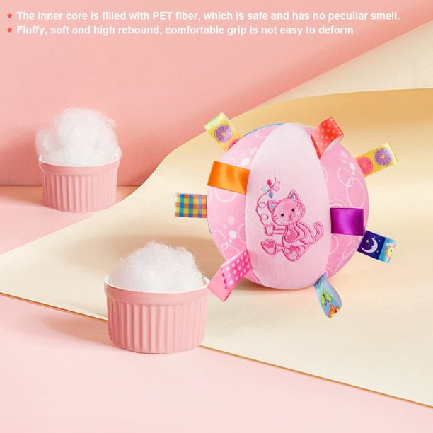 This soft rattle ball toy made from high quality plush material, soft and durable. Give baby soft touch feeling. Made to strict quality standards to meet or exceed toy safety requirements.